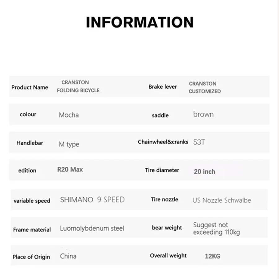 20inch Luomolybdenum steel folding frame,Head tube+Front Fork width 74mm +rear Fork width 130mm |