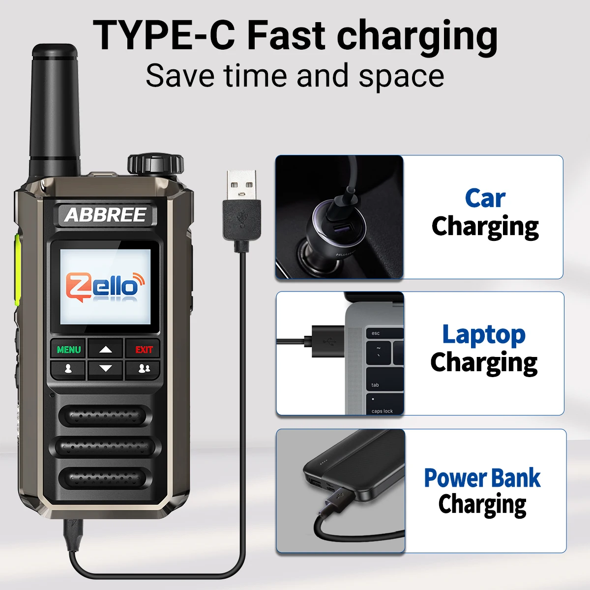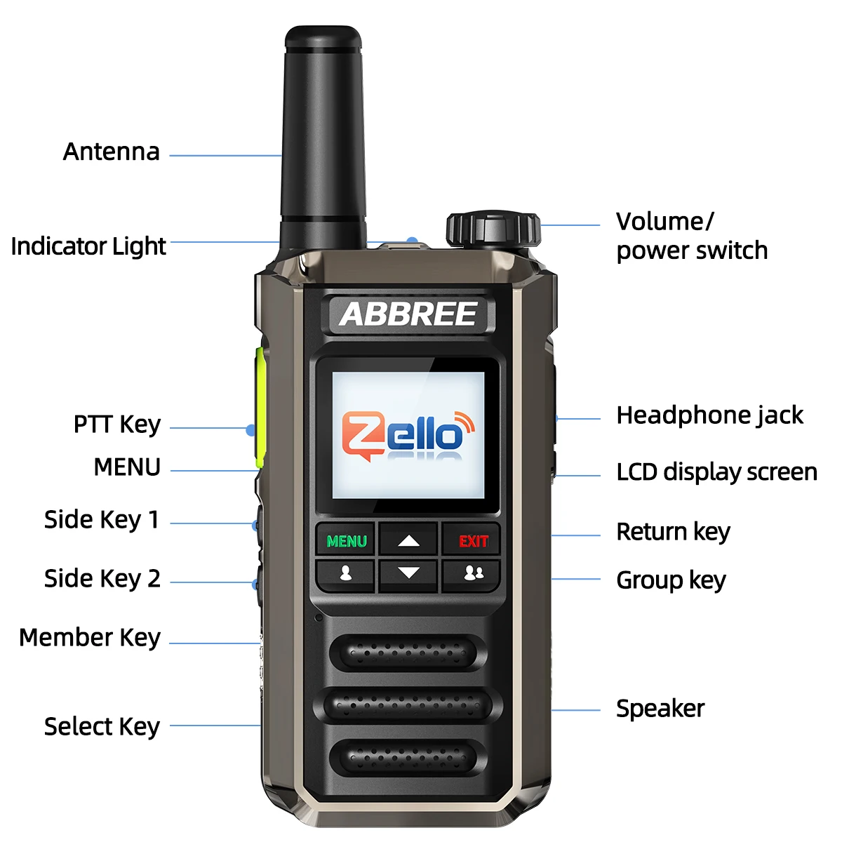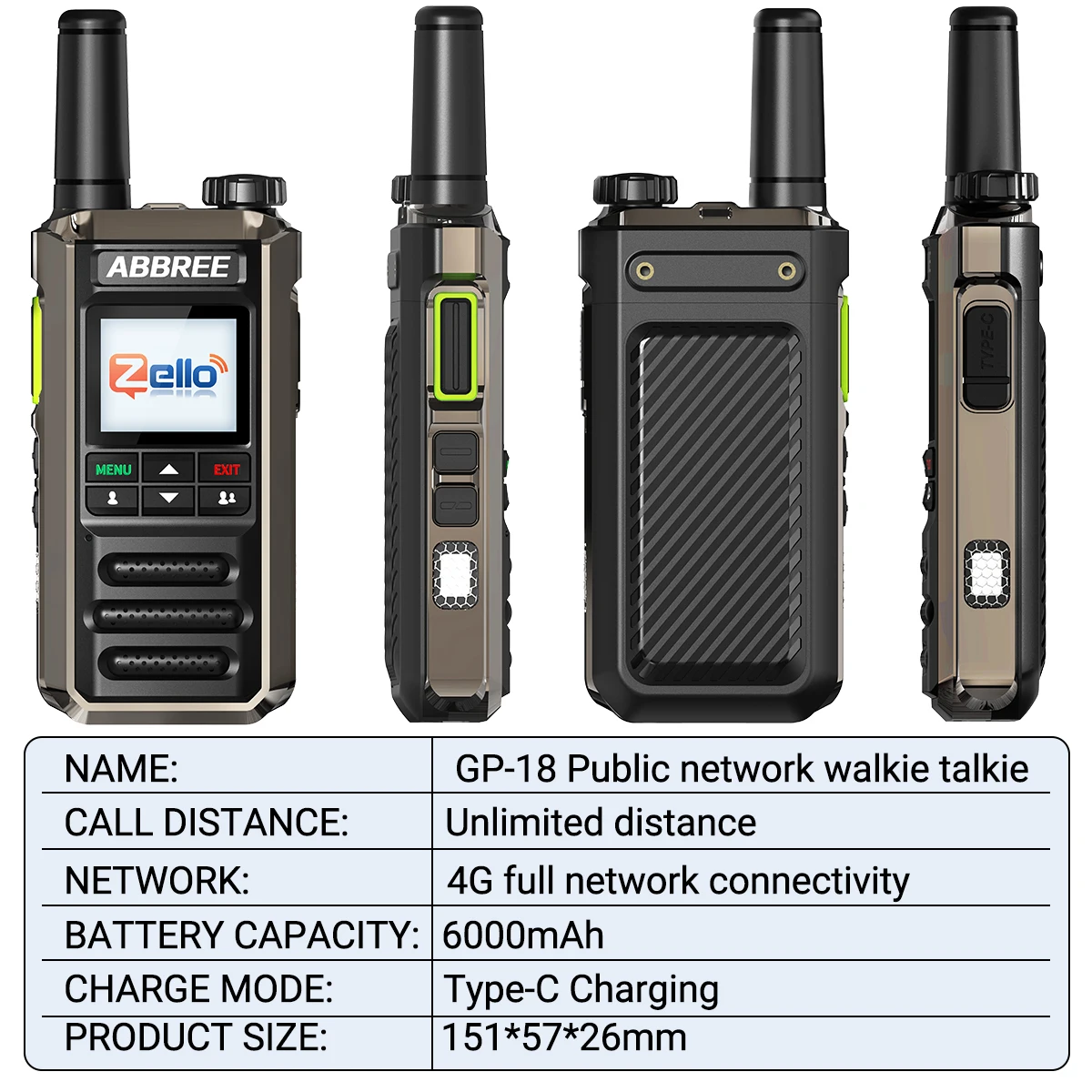ABBREE GP-18 2G/3G/4G Zello Walkie Talkie Dual Sim Card Slots Global POC Android Bluetooth WIFI Unlimited Distance Network Radio