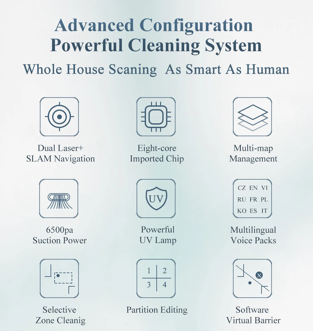 1. X8 has Dual Laser+SLAM Navigation& Eight-core Imported Chip, Which is more advanced than other LDS robot.