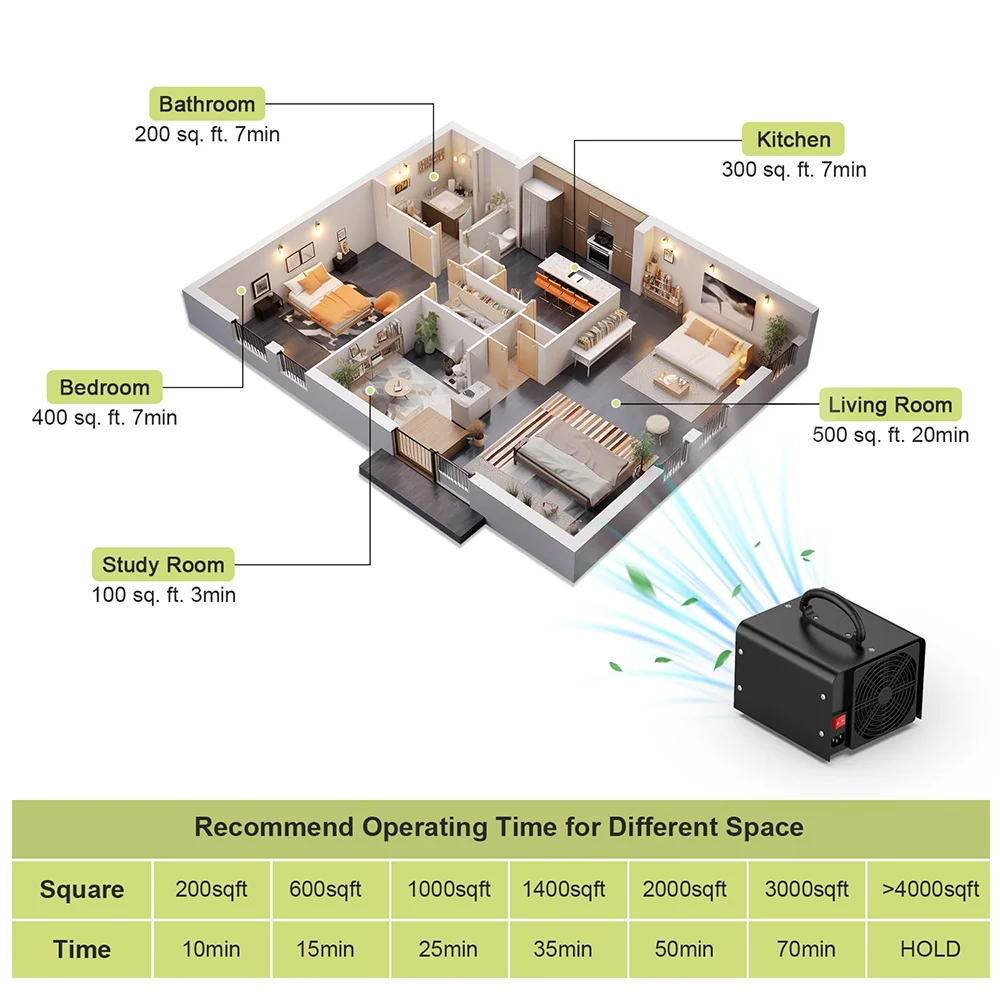 ✅ More Powerful – The Ozone generator has a max output of 10000-30000 mg/h suitable for 2500 sqft space. The Ozone output is more stable, the efficiency is 50% higher than ordinary Ozone machine.