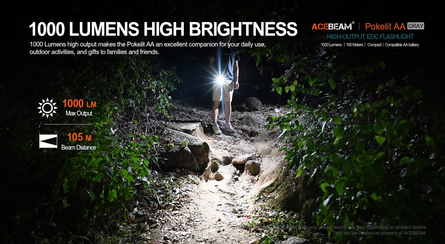 ACEBEAM Pokelit AA EDC flashlight 1000 lumens USB-C rechargeable 14500 batte IP68 small pocket LED flashlight for everyday carry
