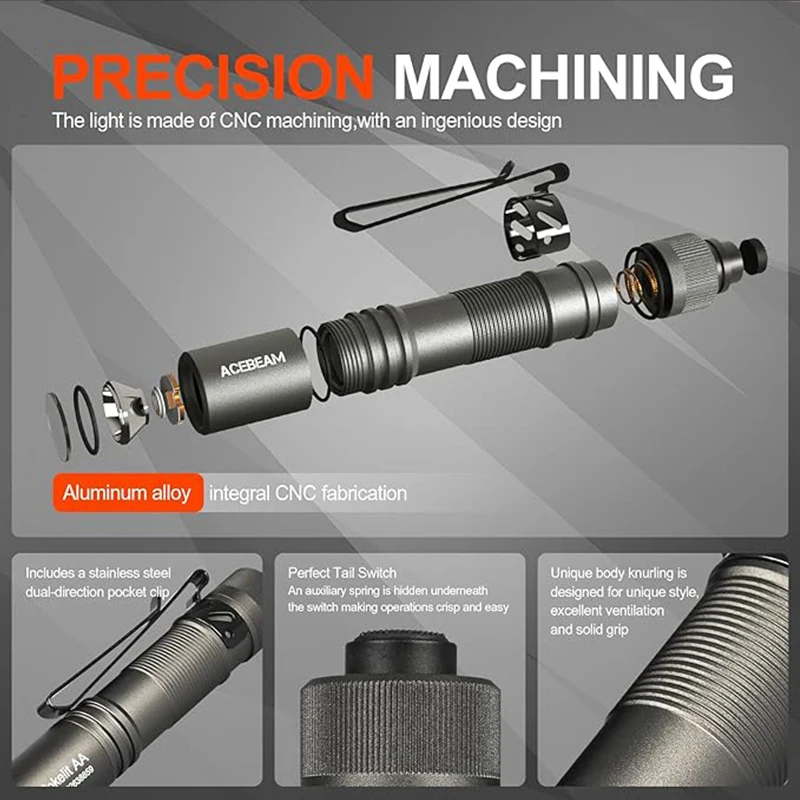 ACEBEAM Pokelit AA EDC flashlight 1000 lumens USB-C rechargeable 14500 batte IP68 small pocket LED flashlight for everyday carry