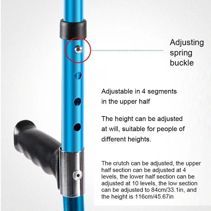 The upper half of the section can be adjusted at any time (the height can be adjusted at will, and it is also suitable for people who do not use height). This cane can be adjusted, the upper half can be adjusted at 4 levels, and the lower half can be adjusted at 10 levels.