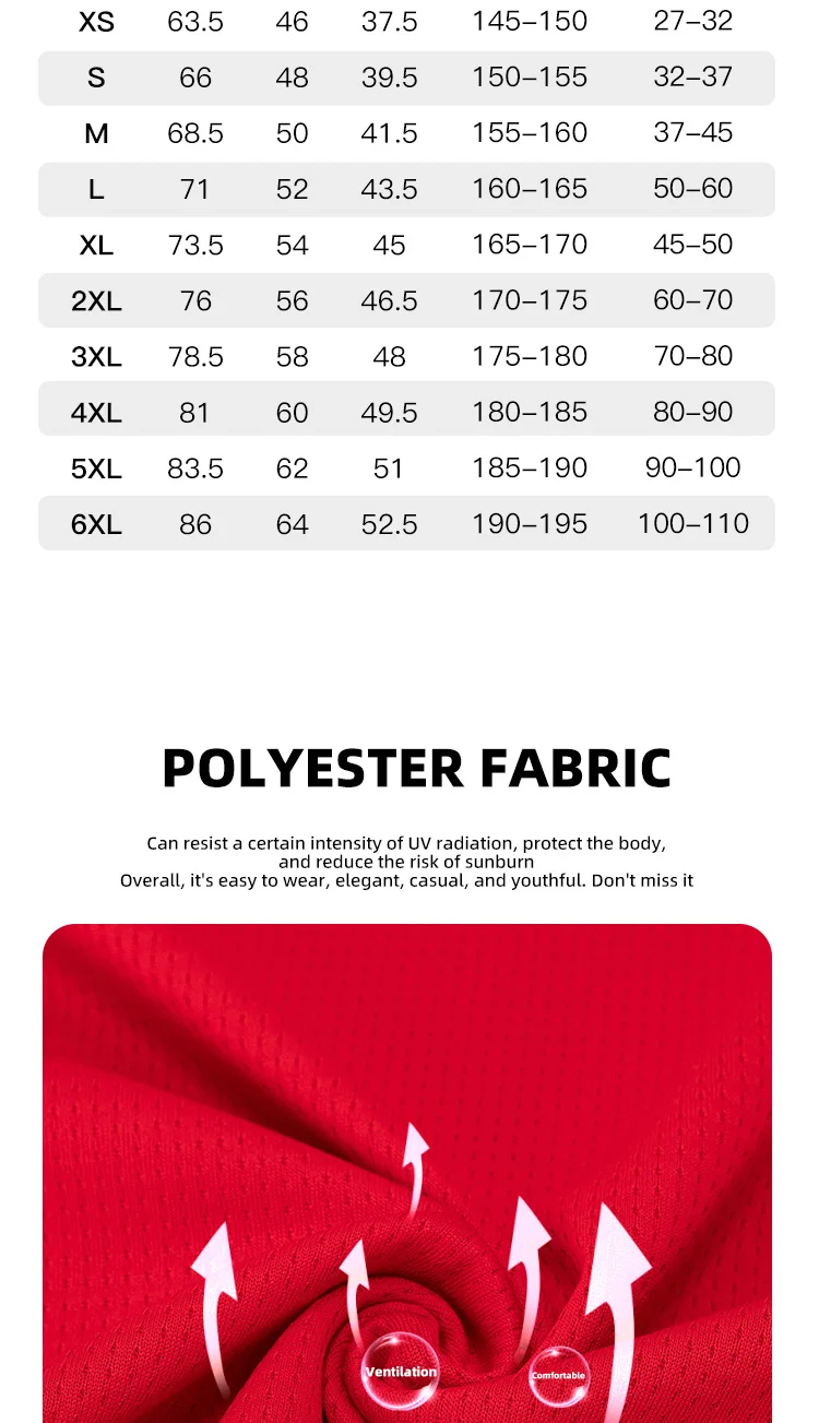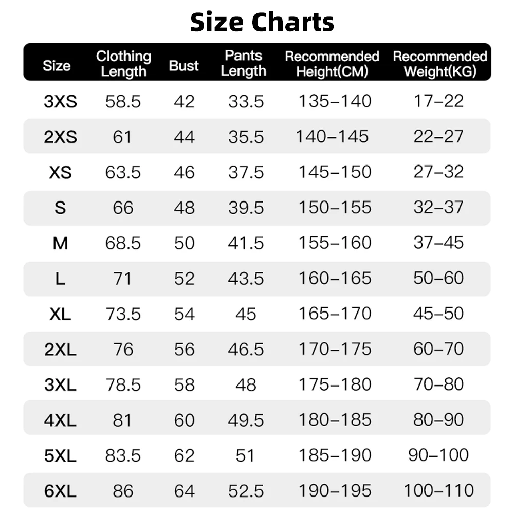 Size 6XL:suitable for height 190-195cm, weight 100-110kg.