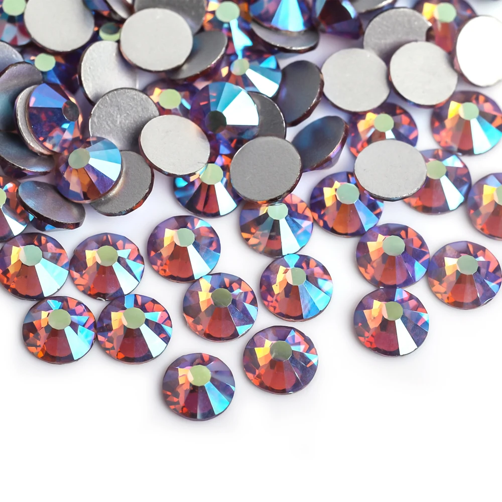 All Amethyst Purple Glass Crystals Non Hot Fix Rhinestones Glitter Strass Flatback Rhinestone For Nails Art Decorations DIY