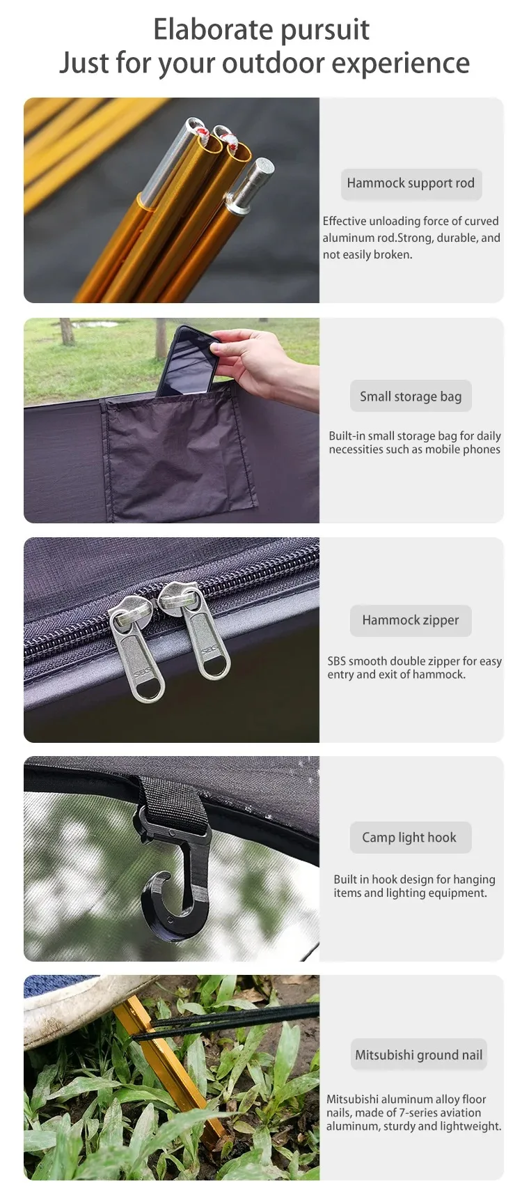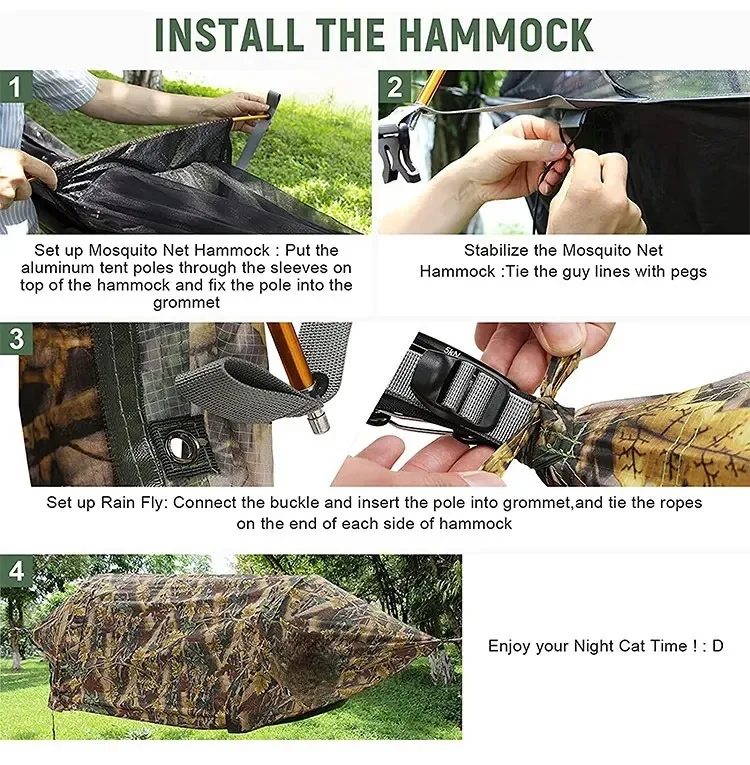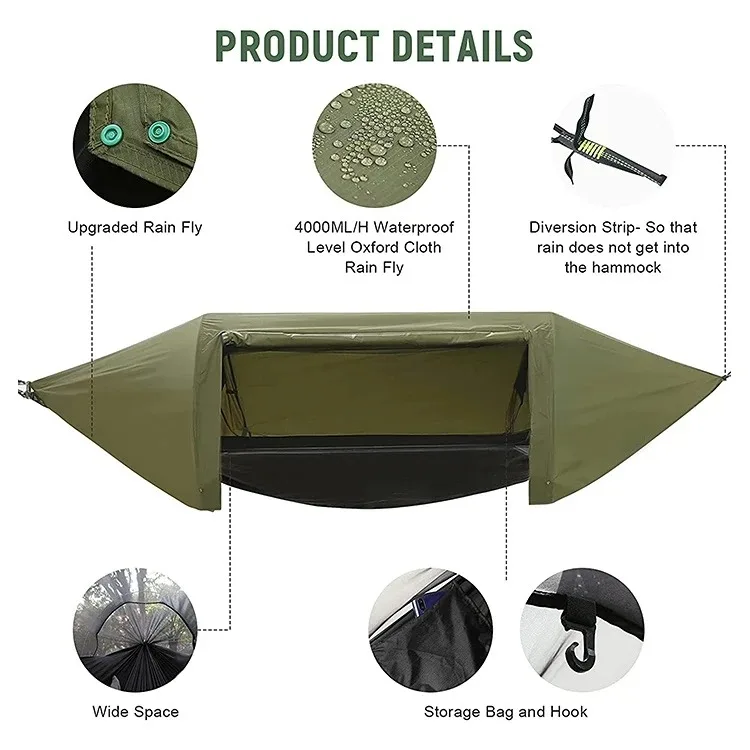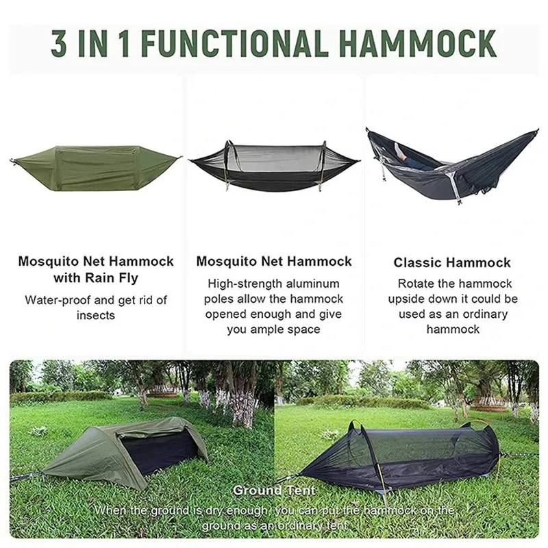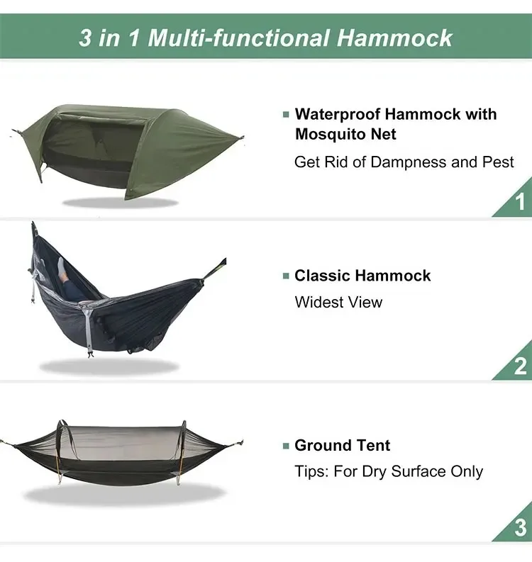 This newly developed integrated system combines a tunnel mosquito net + hammock + waterproof rainfly, designed for ultimate outdoor convenience and practicality. Beyond providing a comfortable sleep experience, it offers full protection against wind, rain, and insects. Sets up in minutes, packs compactly, and is highly portable—a game-changer for outdoor rest equipment.
