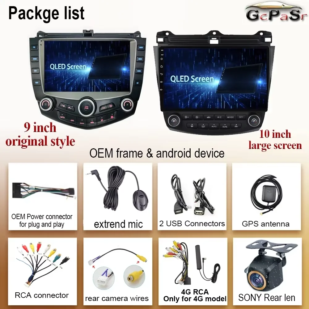 Android 14 For Honda Accord 7 CM 2003 – 2008 high-performance CPU 5G wifi BT Car radio stereo Multimedia player Carplay QLED DSP