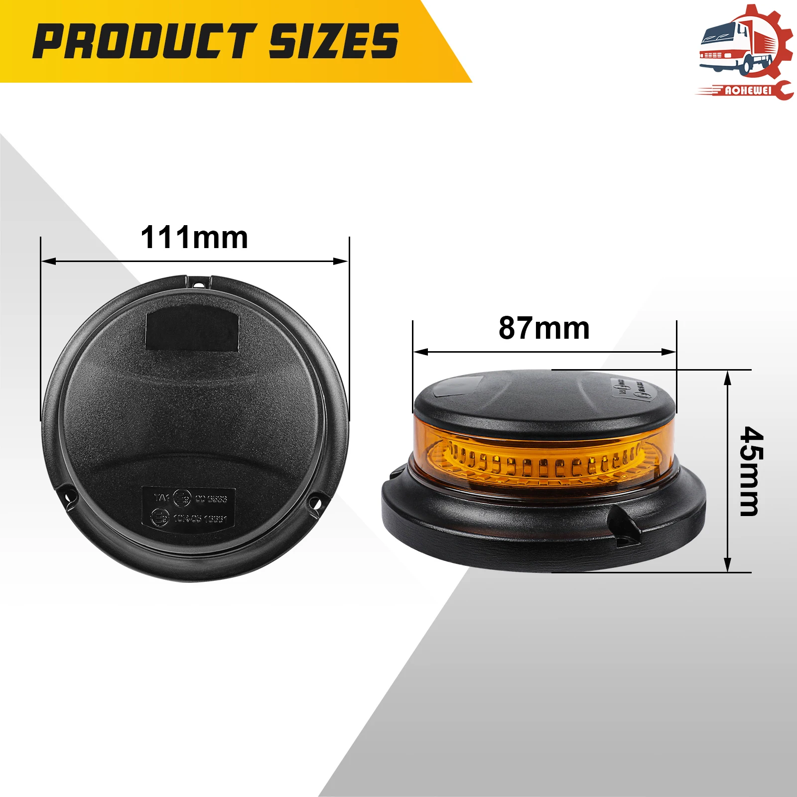 【EASY INSTALLATION】Amber LED light dimensions: diameter 111mm, height 45mm, cable length up to 3m. Suitable for alarming hazardous places in industrial and mineral enterprises, for direct replacement on the roof of a vehicle, etc.