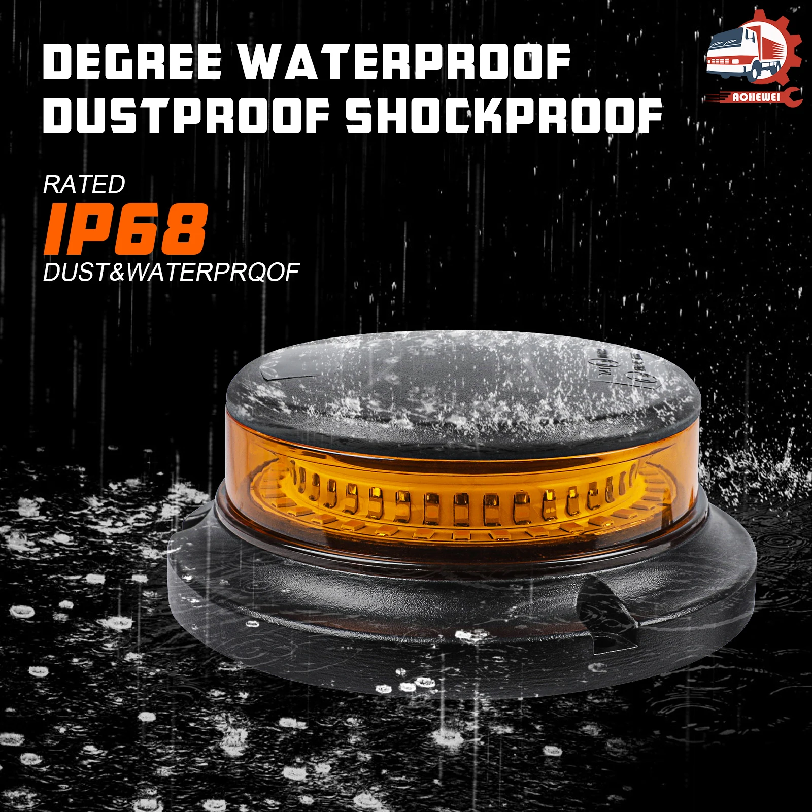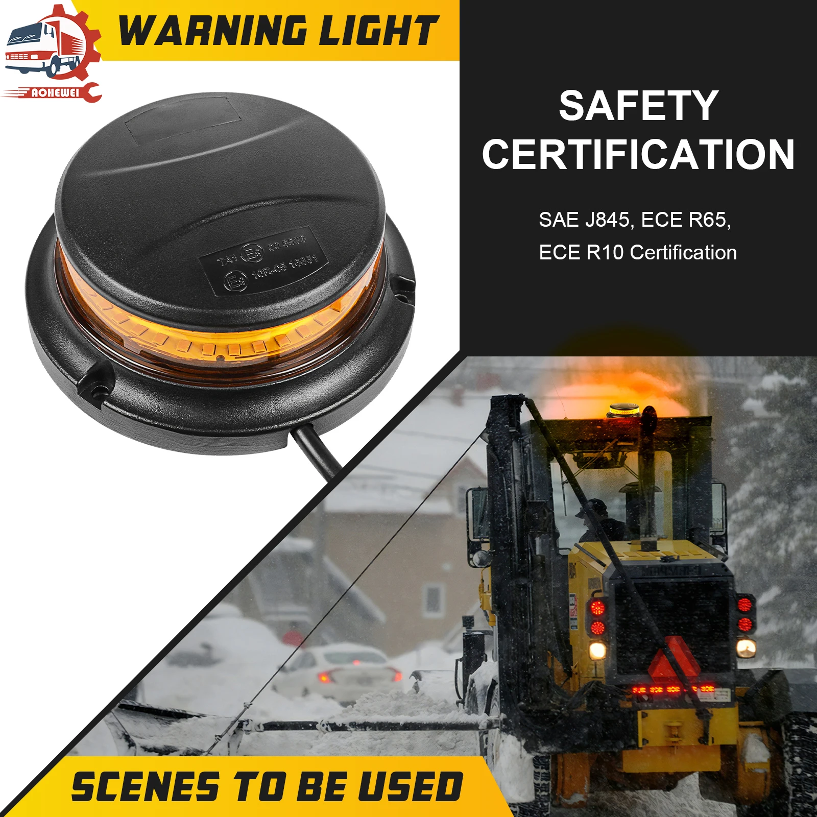 AOHEWEI Yellow Warning Light 36leds And 10 Modes Magnetic Signal Light For Bus Trucks Tractor Waterproof Ip68