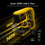 - PD Output: 140W Max Each Port. 5V/3A, 9V/3A, 12V/3A, 15V/3A, 20V/5A, 28V/5A, PPS 3.3-21V/5A