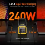 Equipped with cutting-edge PD 3.1 fast charging technology, This AOHI the Future Starship power bank delivers an impressive 240W total output, featuring dual USB-C ports with up to 140W max output and an additional USB-A port with up to 22.5W max output. This portable power bank can charge two laptops at once—when USB-C 1 delivers 140W, USB-C 2 can provide up to 100W max. If you need a quick boost for your device, this battery pack can power up a 16″ MacBook Pro from 0% to 50% in just 28 minutes, keeping your workflow and entertainment uninterrupted. Whether you’re working, traveling, or gaming, this is the ultimate charging companion