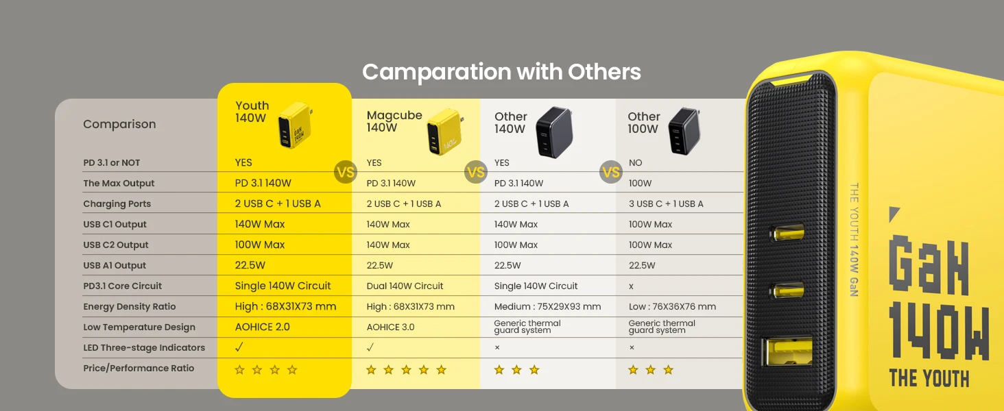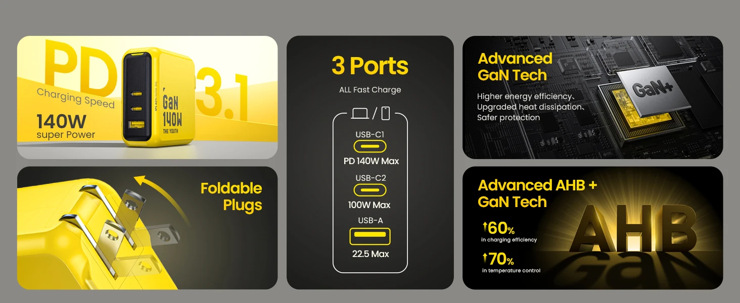 Why choose AOHI Youth 140W GaN+USB C Charger?