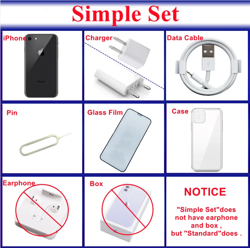 "SE 2020 Simple Set" means you will get iPhone se2020 phone + AC wall charger + data cable , but no original box and no earphone .
