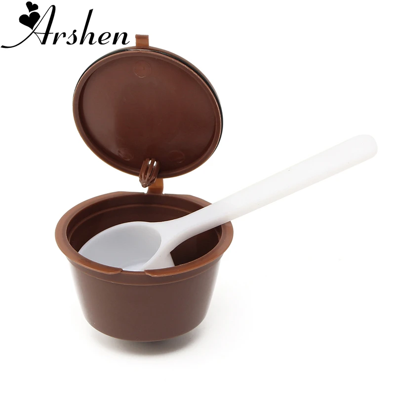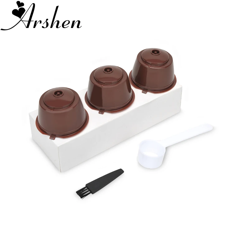 Arshen 3pcs/Set Dolce Gusto Plsatic Refillable Coffee Capsule with Spoon Brush 200 Times Reusable Compatible Nescafe Dolce Gusto