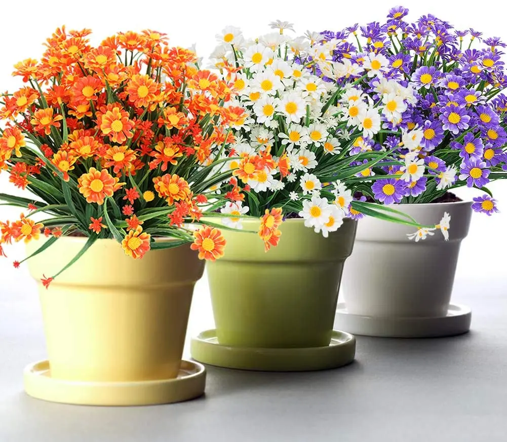 Artificial Daisy Flowers Fake Flowers UV Resistant Greenery Shrubs Planter Home Office Garden Yard Window Box Wedding Decoration
