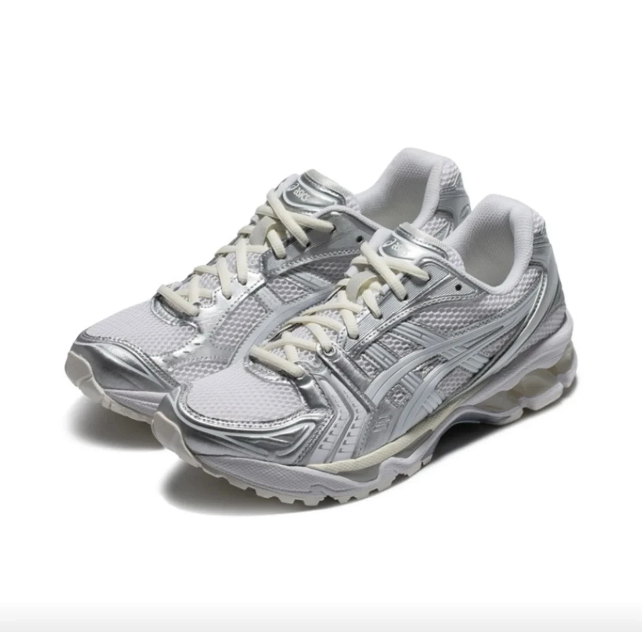 Asics Gel-Kayano 14 Men and Women Round Toe Lace-Up Anti-Slip Wearable sport Running Shoes Unisex Silver Powder