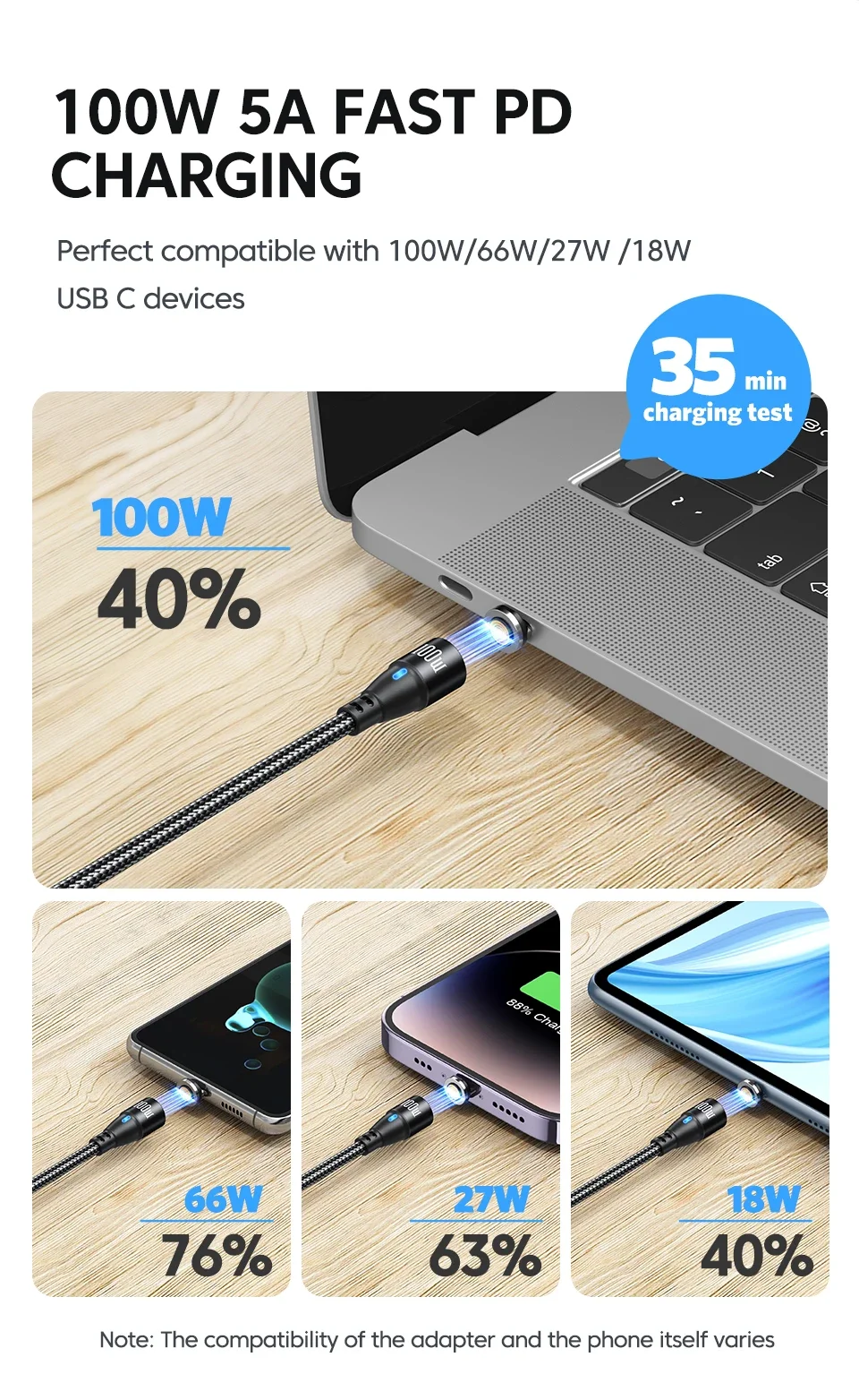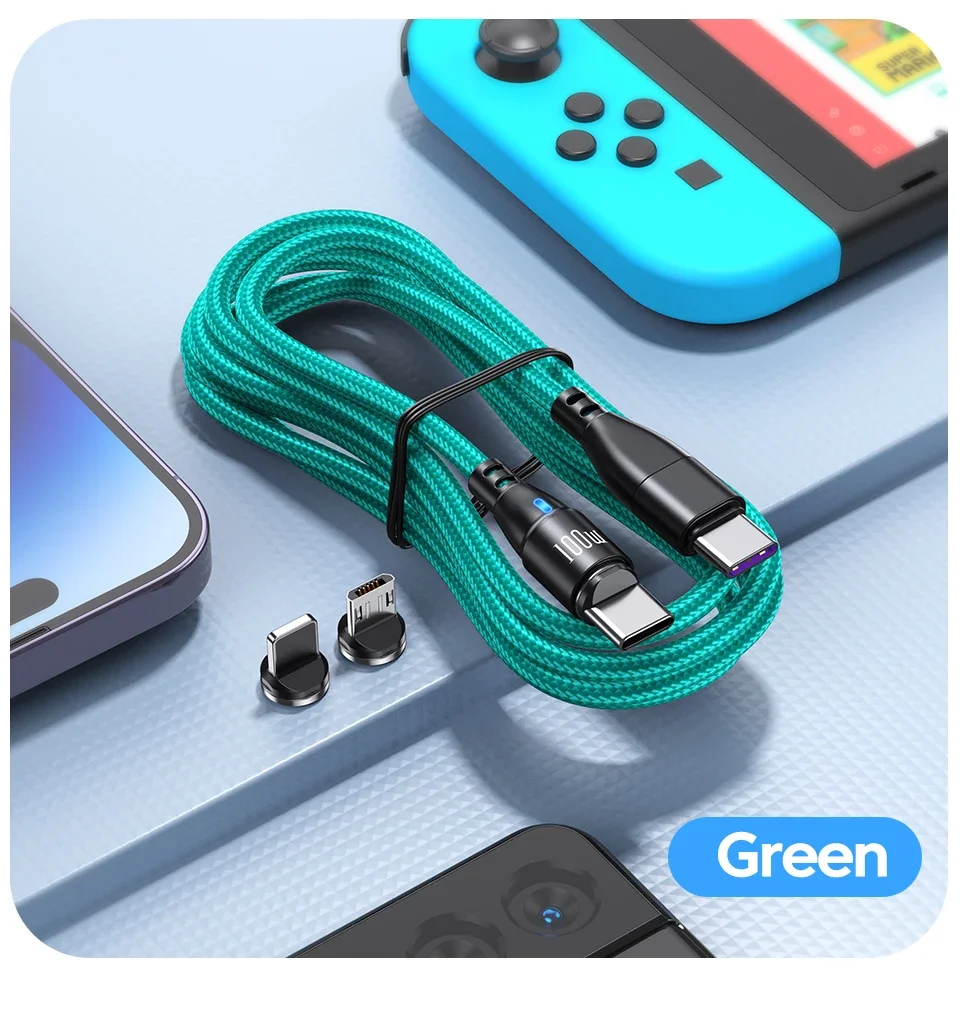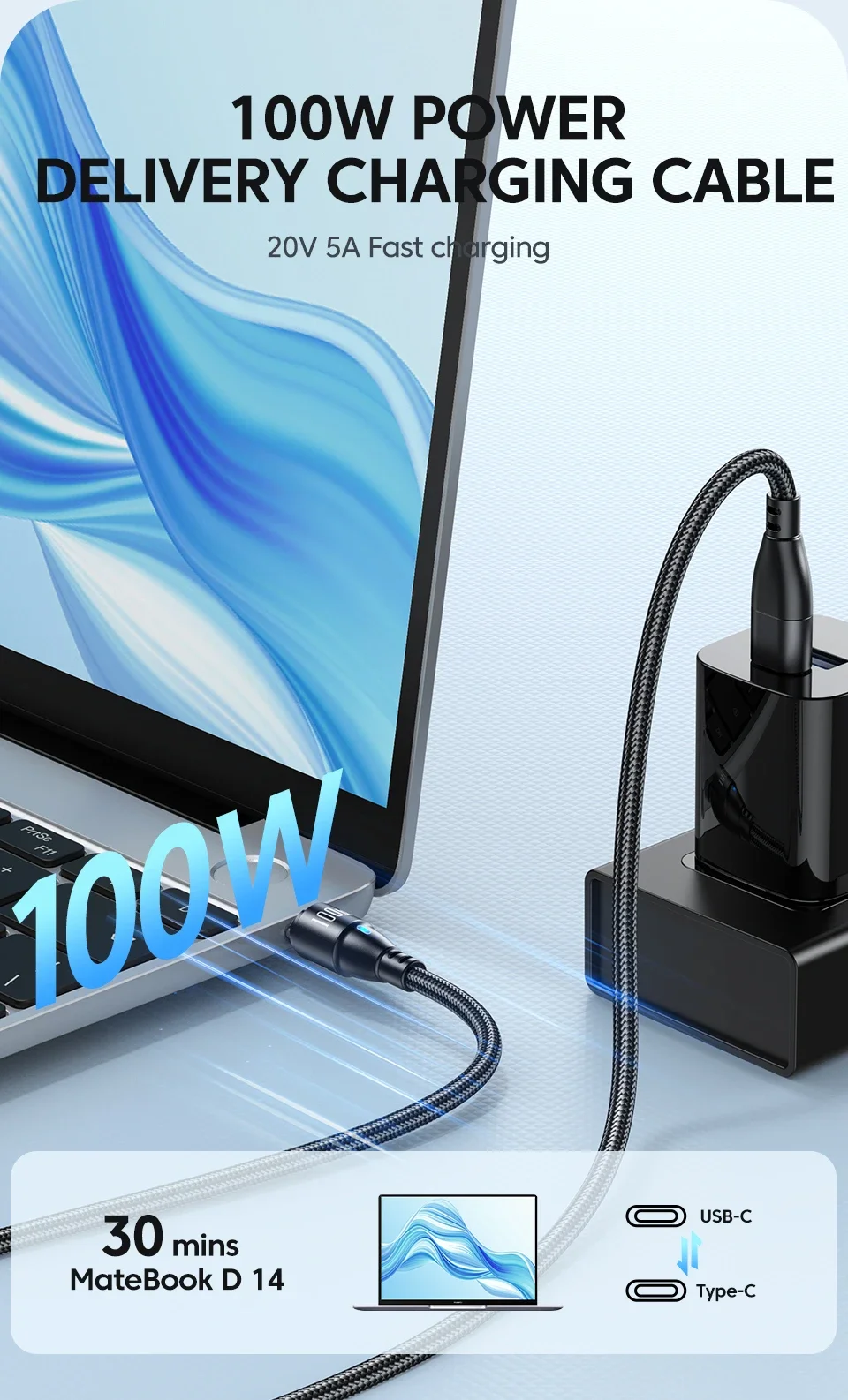 AUFU PD 100W/5A Magnetic Fast Charging Cable for iPhone 15 14 Pro Xiaomi 13 USB C To Type C Data Charge Cord for Macbook Laptop