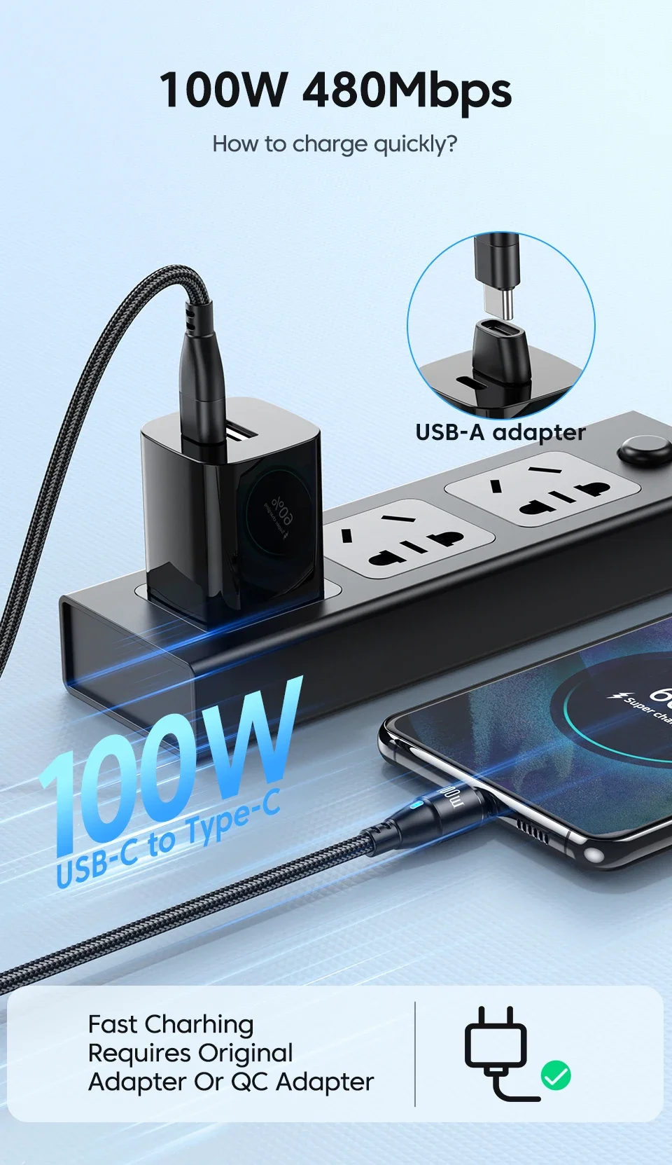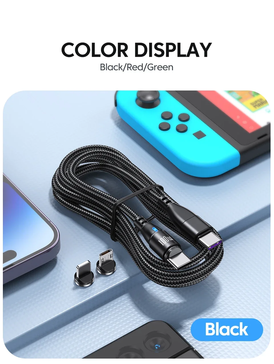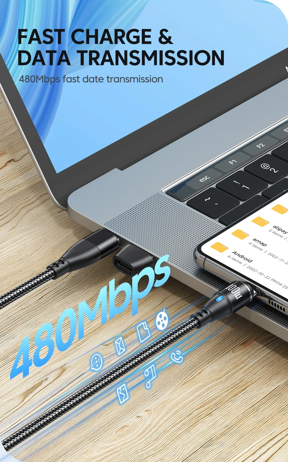 AUFU PD 100W/5A Magnetic Fast Charging Cable for iPhone 15 14 Pro Xiaomi 13 USB C To Type C Data Charge Cord for Macbook Laptop