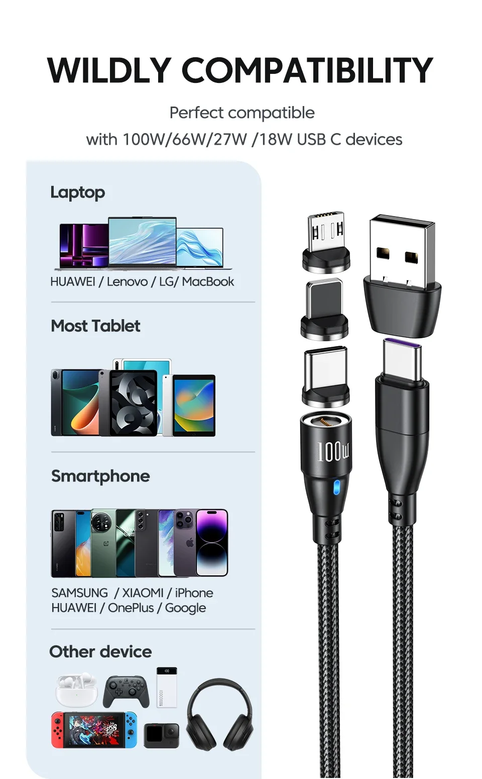 Connectors: 3 in 1 type-C, Micro USB, and For IOS connectors, please select the correct type while placing an order.
