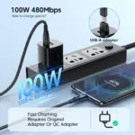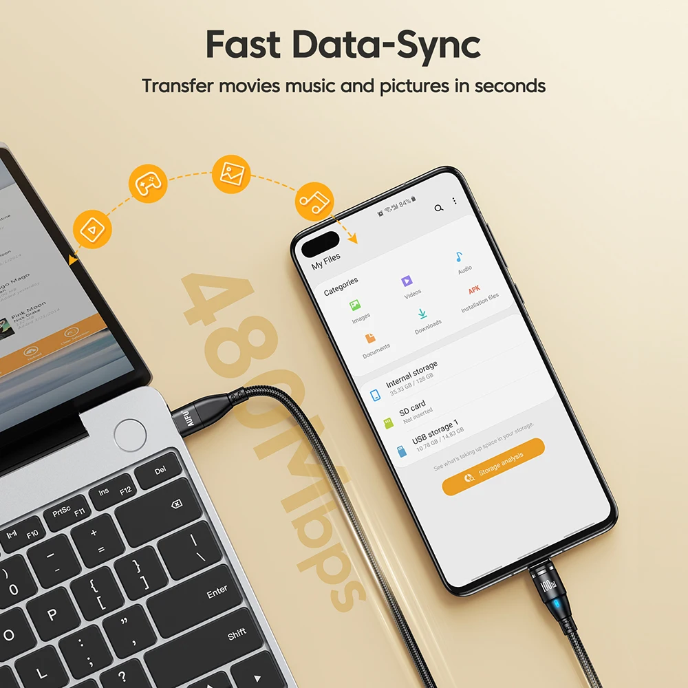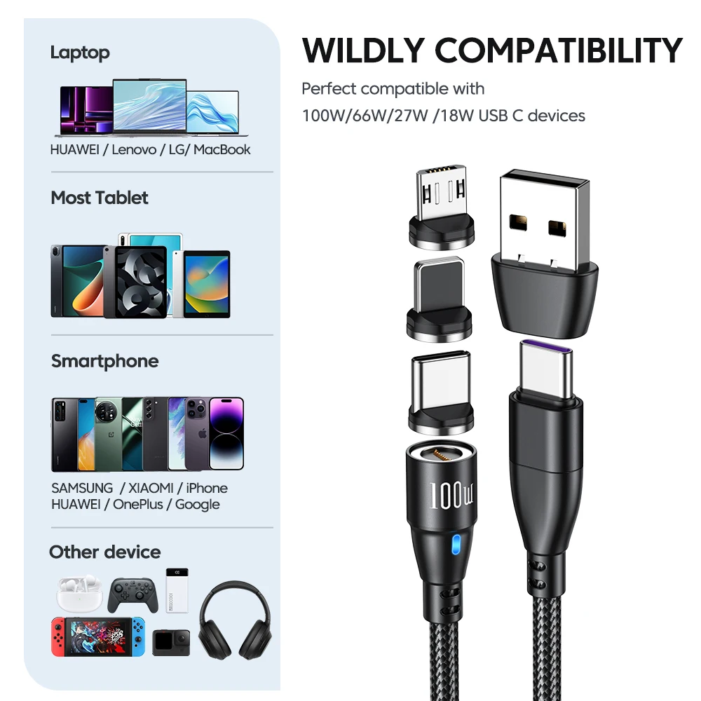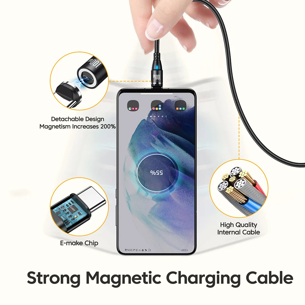 AUFU PD 100W/5A Magnetic Fast Charging Cable for iPhone 15 14 Pro Xiaomi 13 USB C To Type C Data Charge Cord for Macbook Laptop