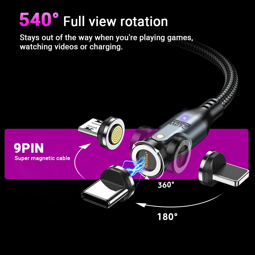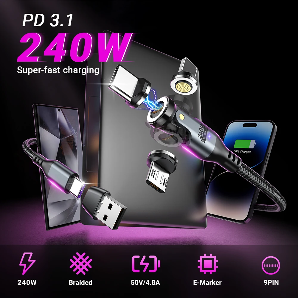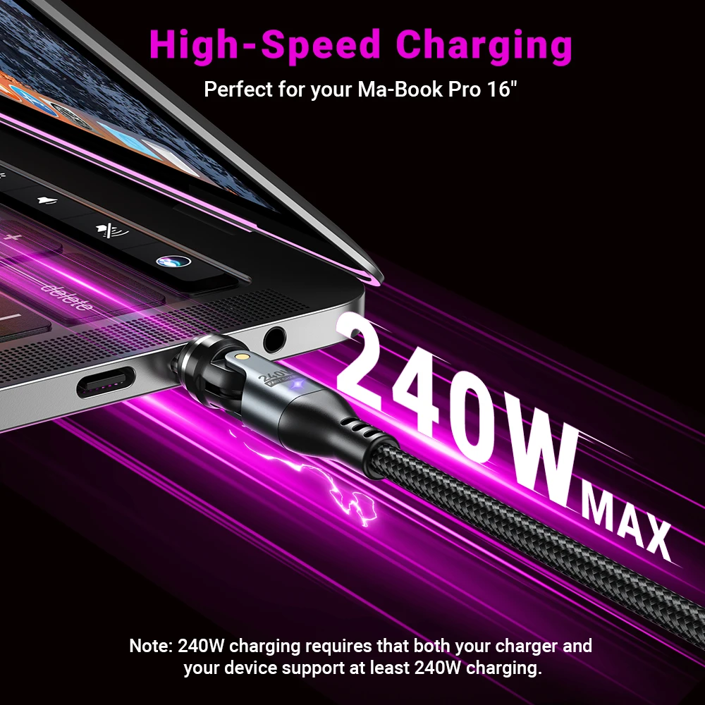 AUFU 240W Magnetic Type-c Cable for MacBook Samsung S22 Xiaomi iPhone USB C To USB C Cable 48V 5A Super Fast Charging Micro Type C Magnet Charger Wire Cord