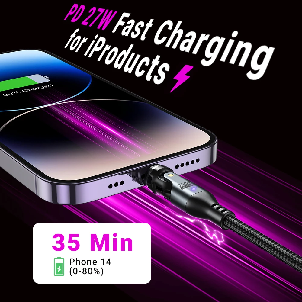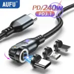 AUFU 240W Magnetic Type-c Cable for MacBook Samsung S22 Xiaomi iPhone USB C To USB C Cable 48V 5A Super Fast Charging Micro Type C Magnet Charger Wire Cord