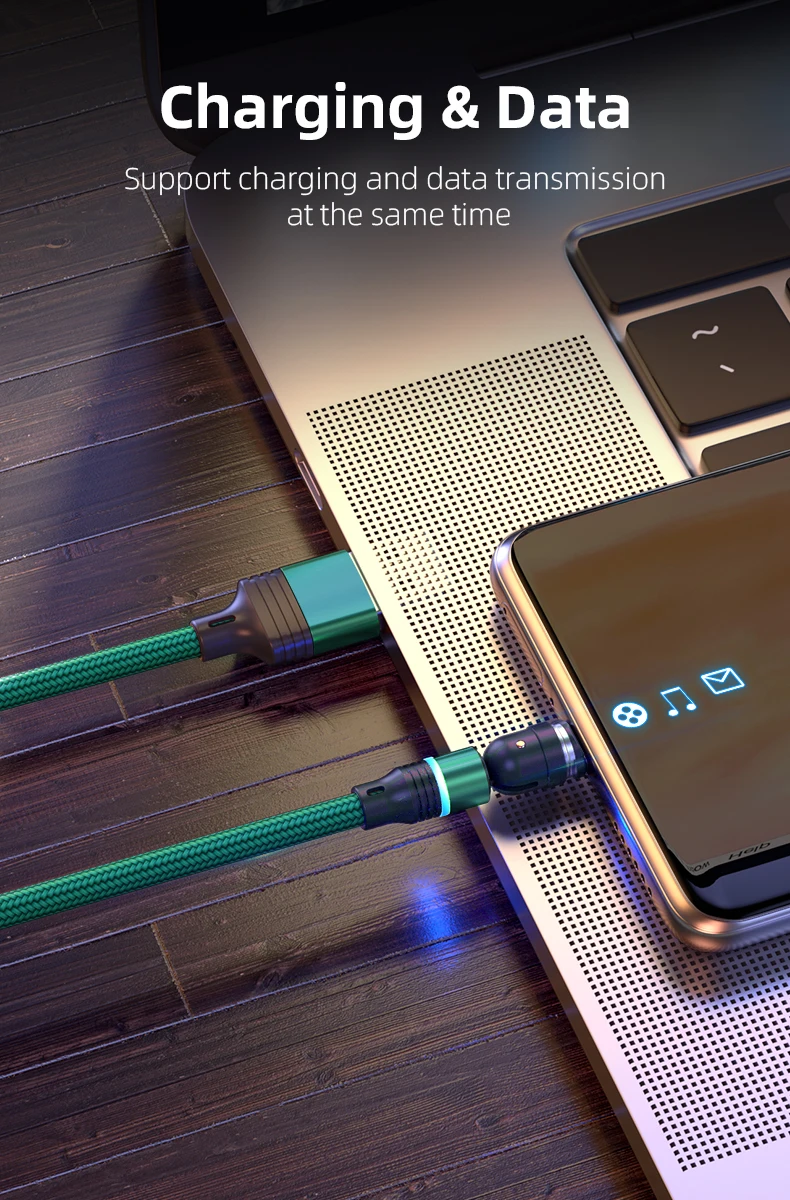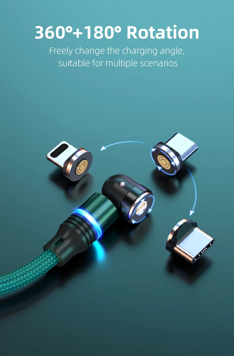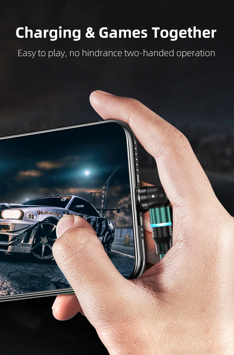 180°L shape & 360°rotating magnetic head design, It has all the functions of the straight and 90 degrees L-shaped magnetic cable, which is more convenient for playing games.