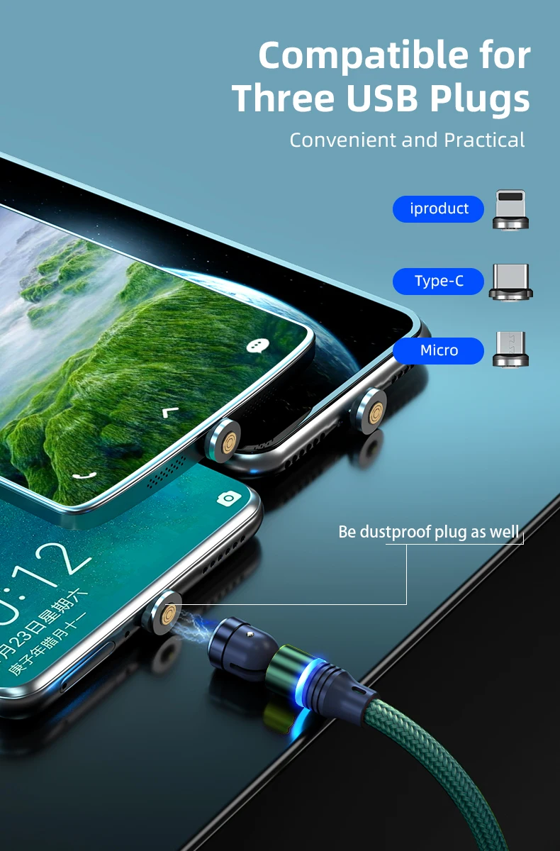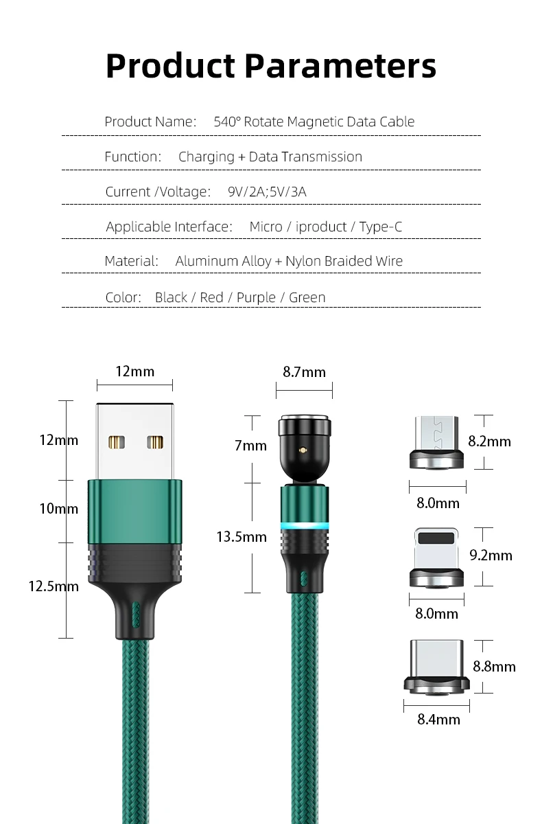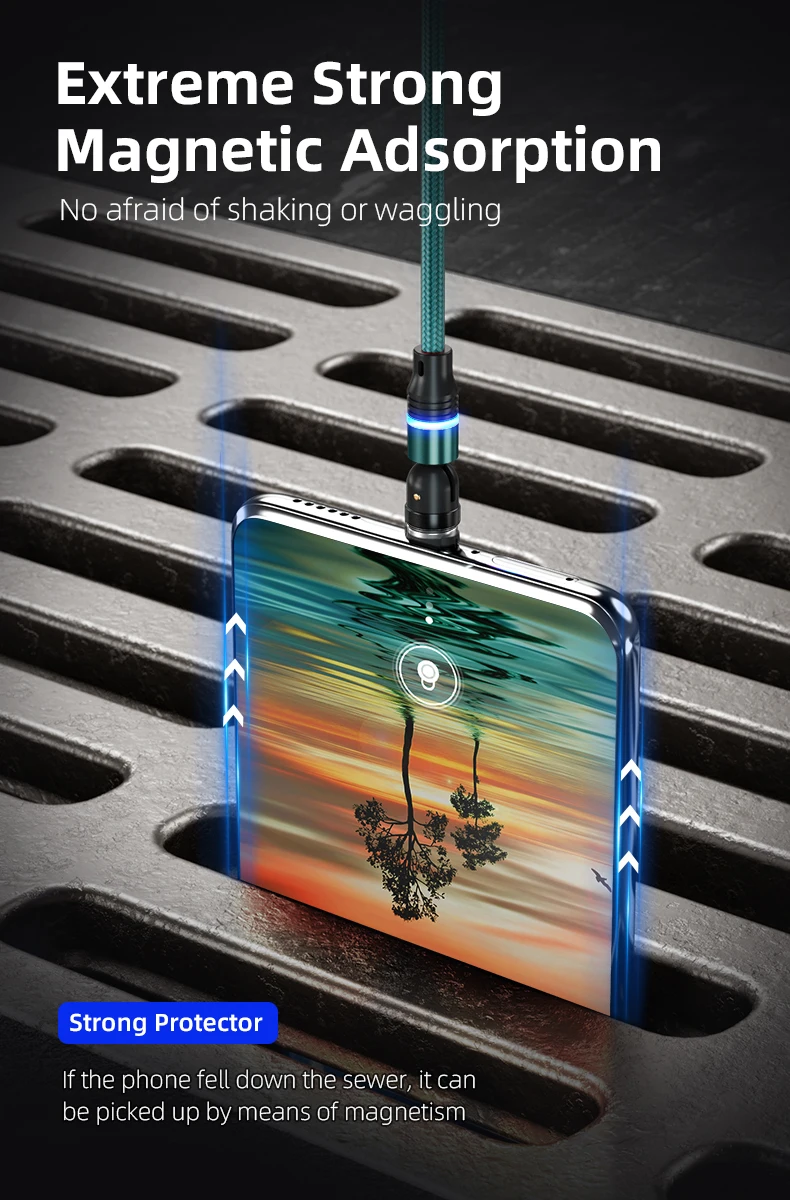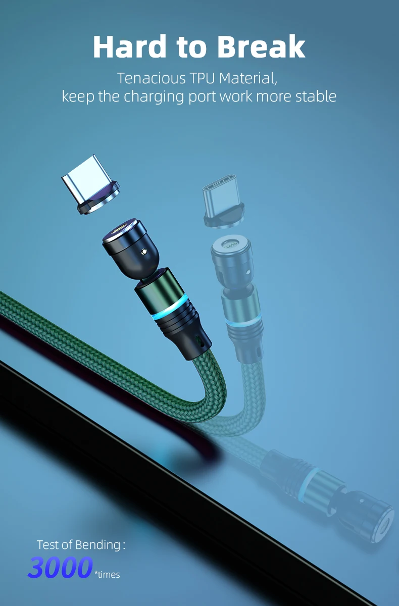 180°L shape & 360°rotating magnetic head design, It has all the functions of the straight and 90 degrees L-shaped magnetic cable, which is more convenient for playing games.