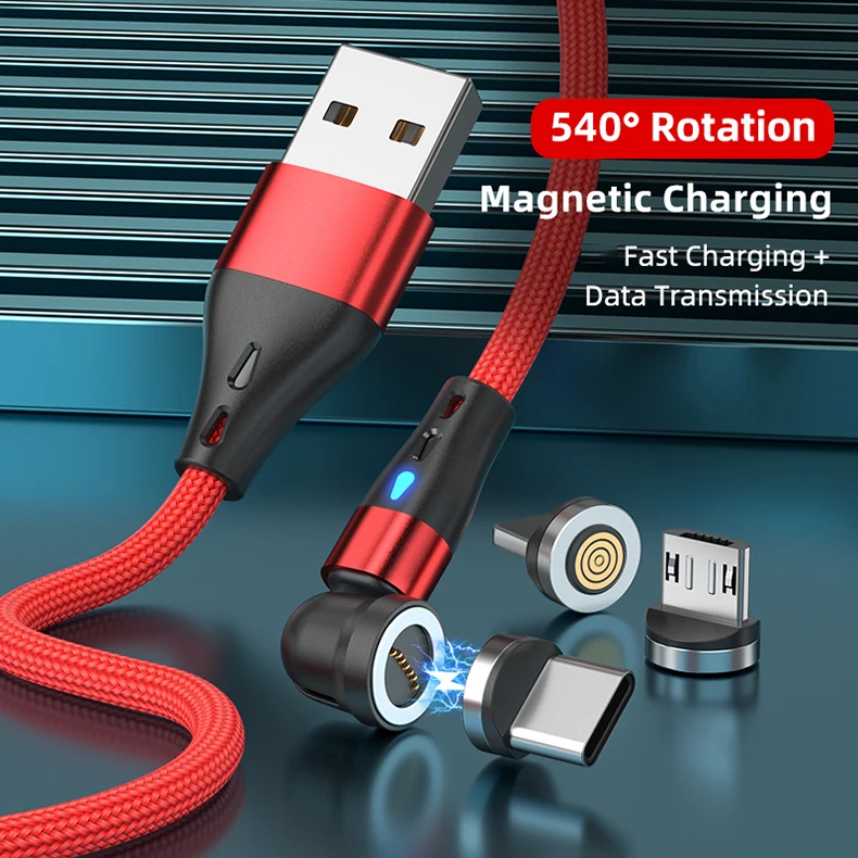 540 Rotate 5A Magnetic Cable Fast Charging Micro USB Type C Cable For iPhone Xiaomi Magnet Charger Wire Cord USB Cable