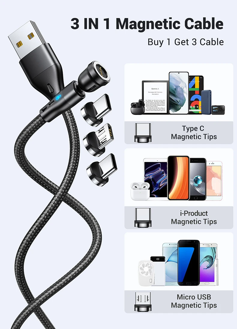 - Feature1: 540 Degree Rotate Round Magnetic Cable