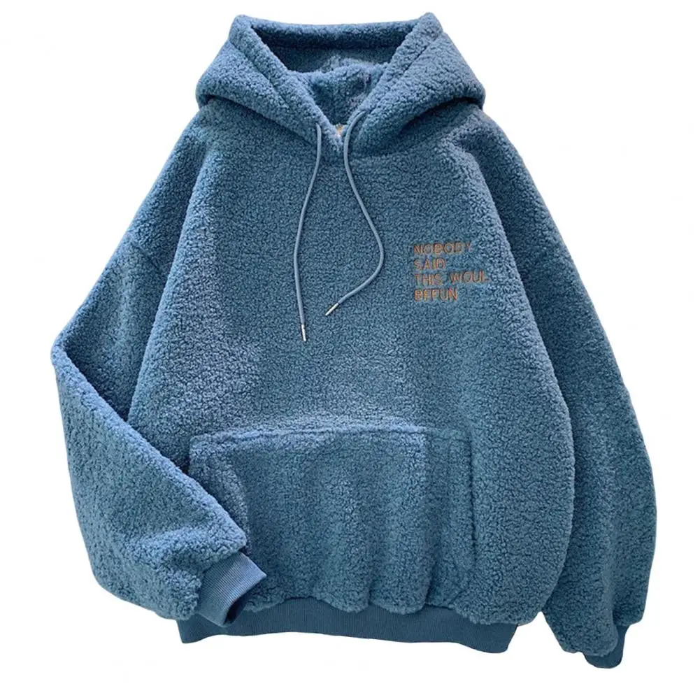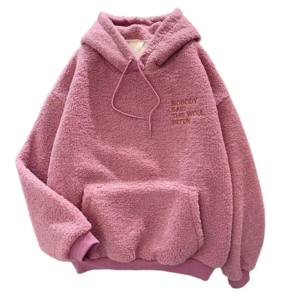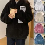 Stay warm and stylish with this women’s autumn and winter fleece sweatshirt. The hoodie features a drawstring adjustment for a personalized fit and large connected pockets on the front for added convenience. Made of velvet material, this thick sweatshirt is perfect for cold winter days.