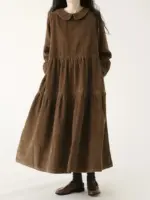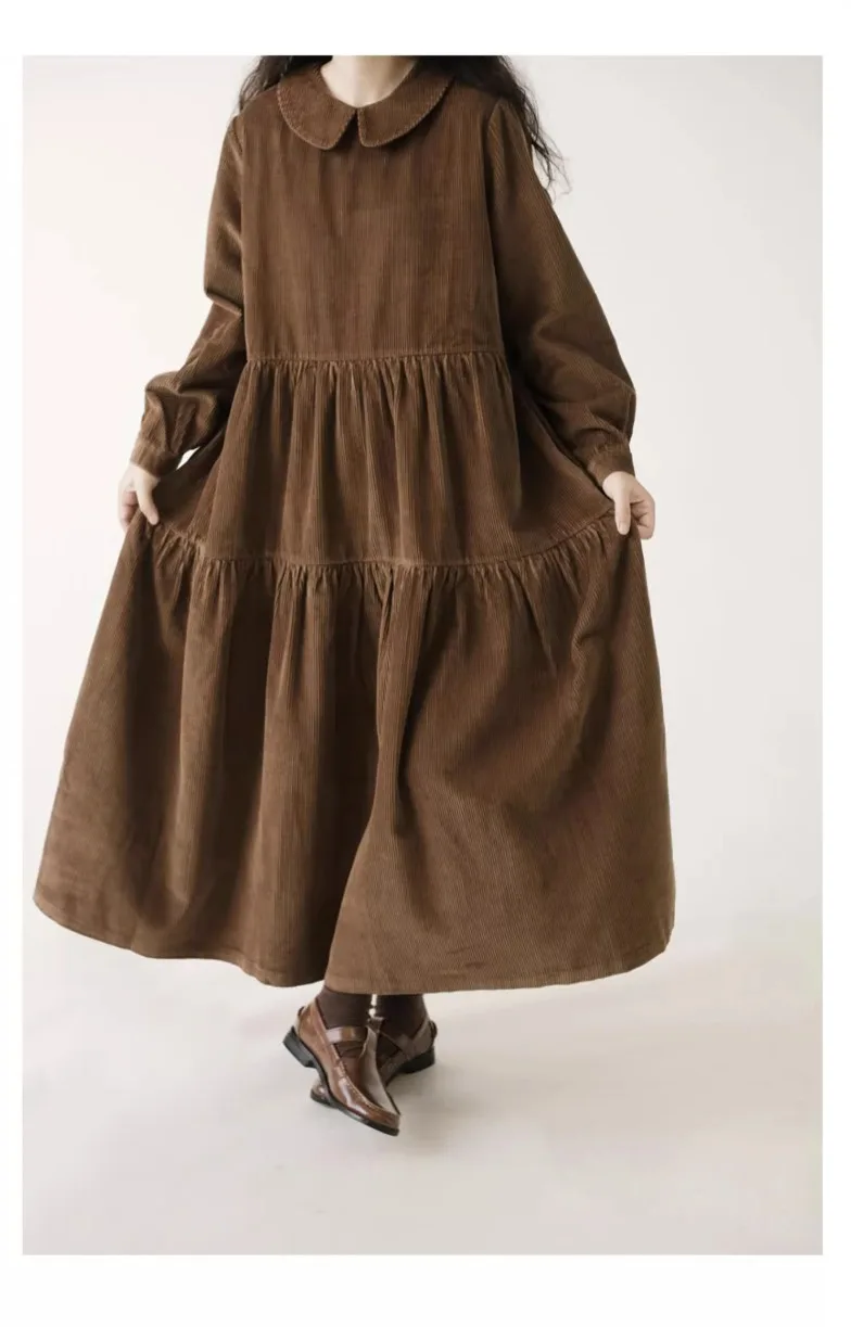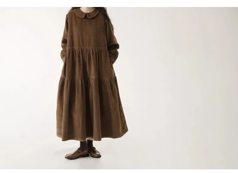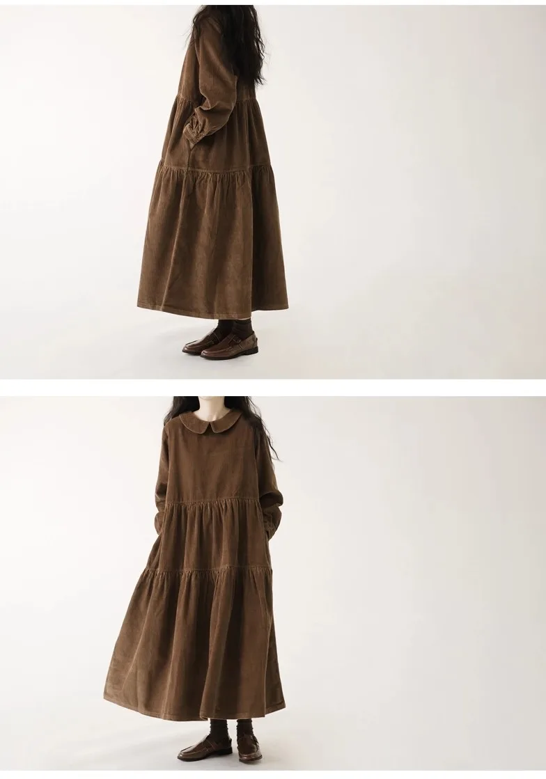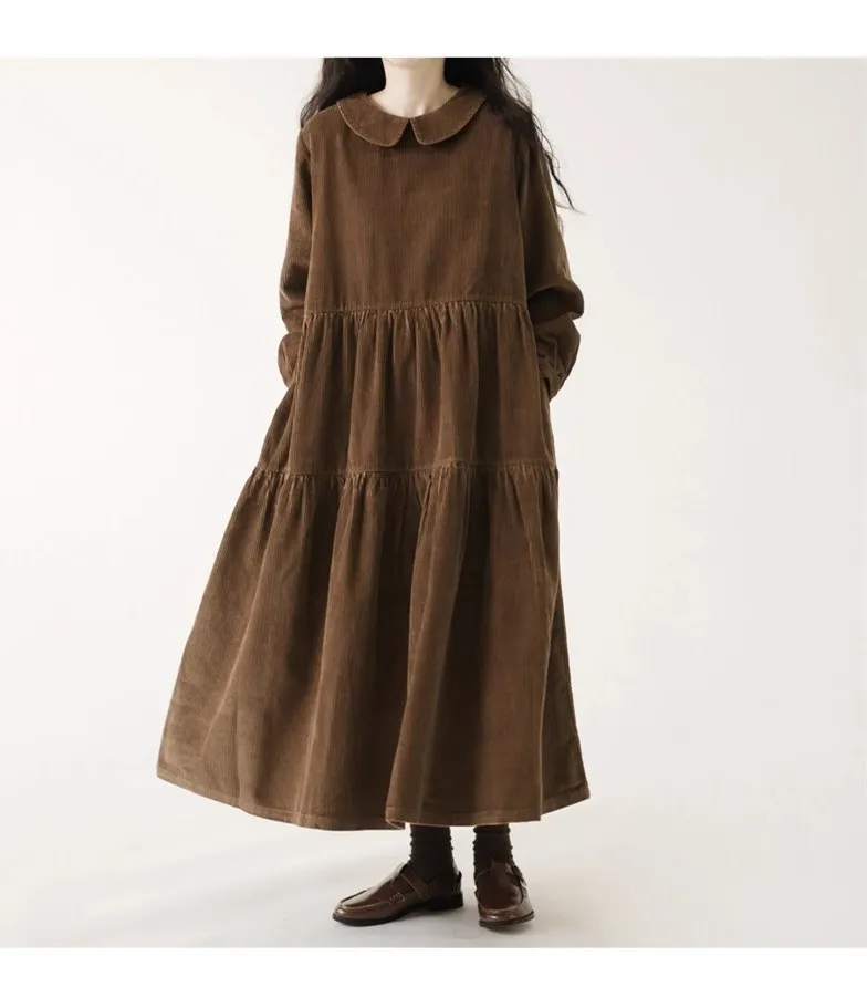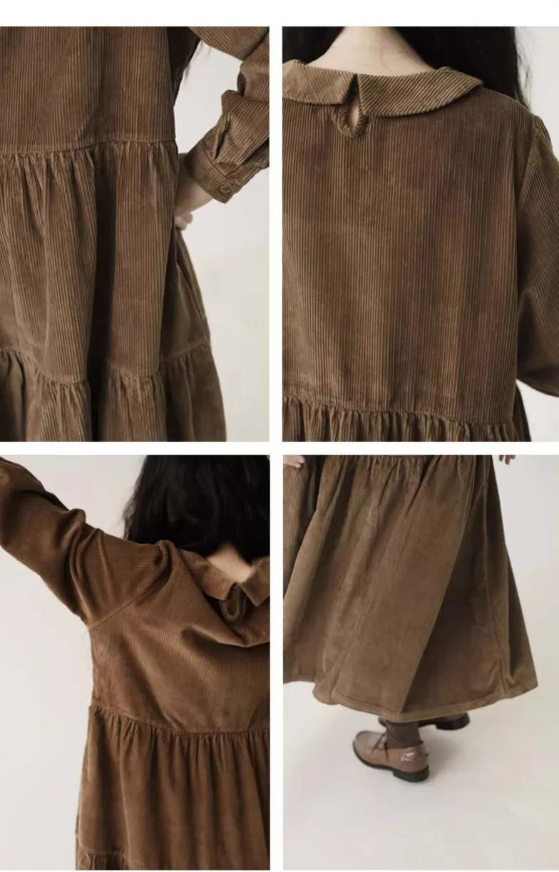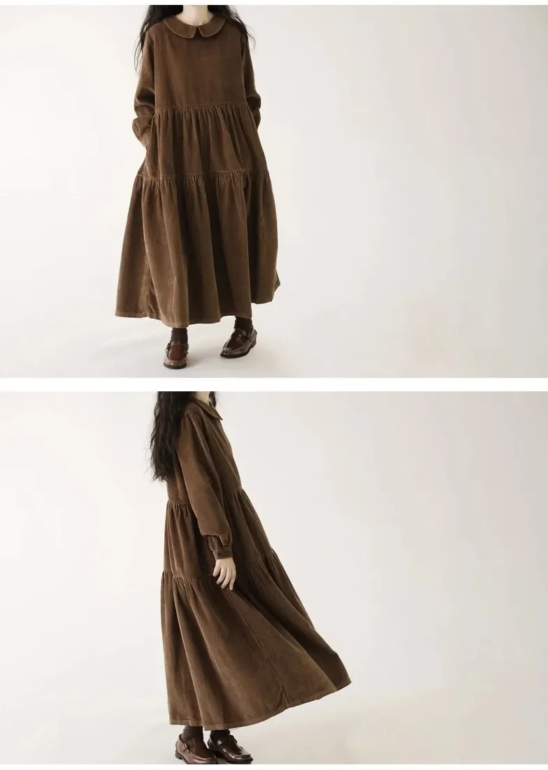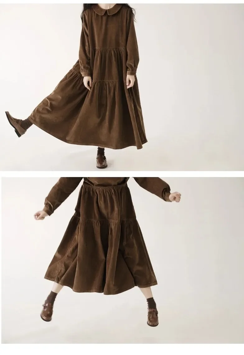 Autumn Winter Corduroy Dress Women Casual Dresses Fashion Female Vestidos Long Sleeve Vintage A-line Dress Women’s Dresses