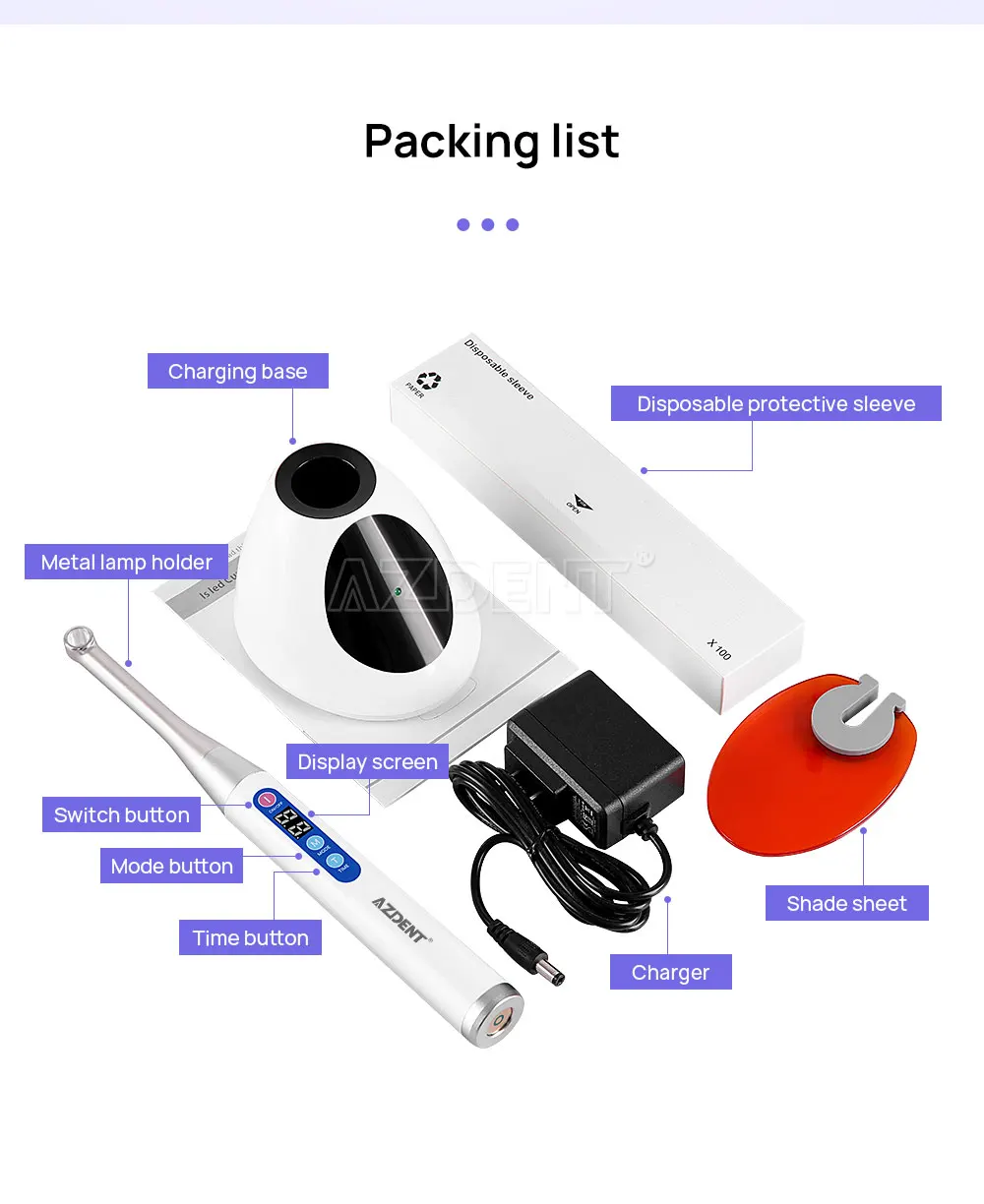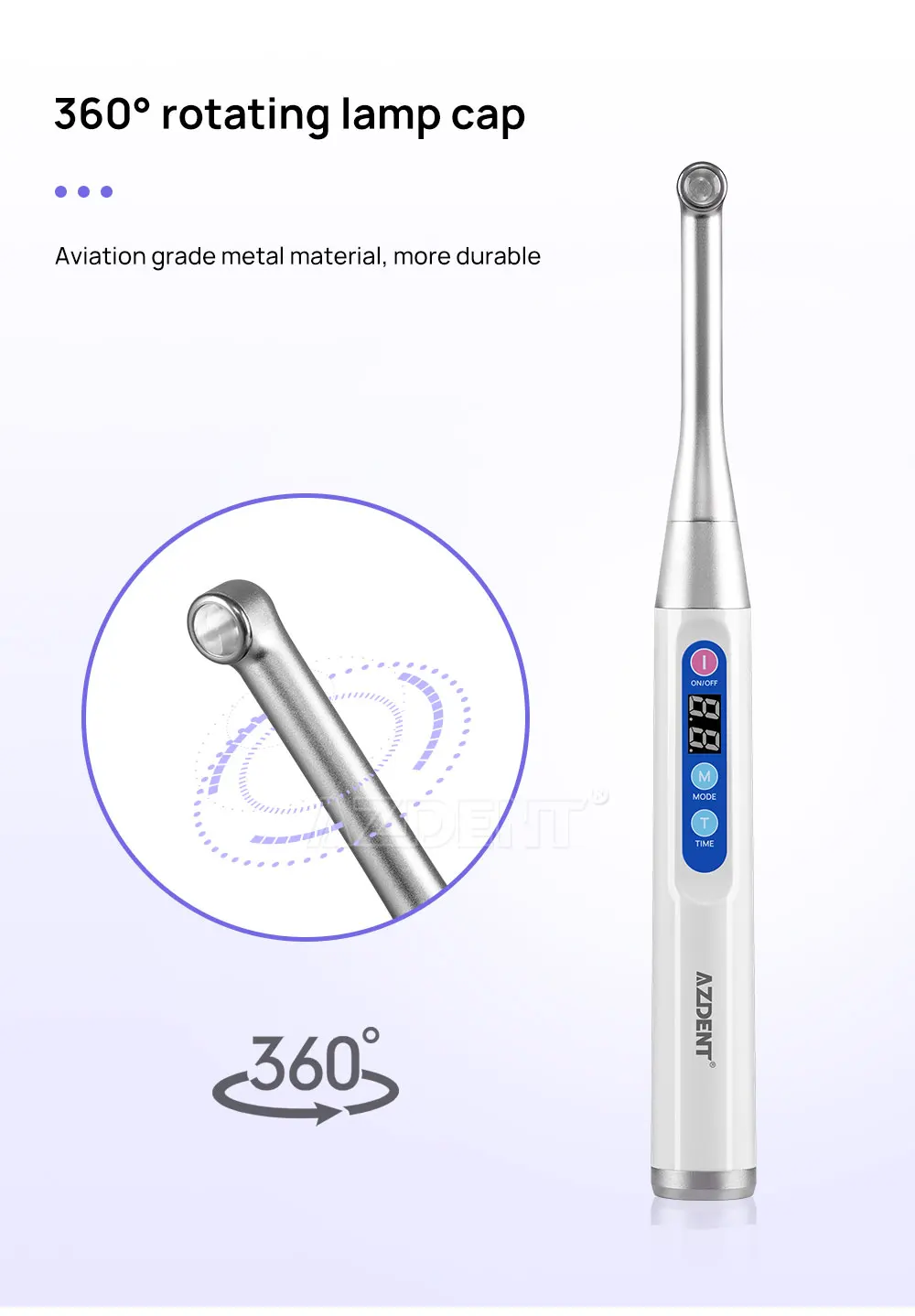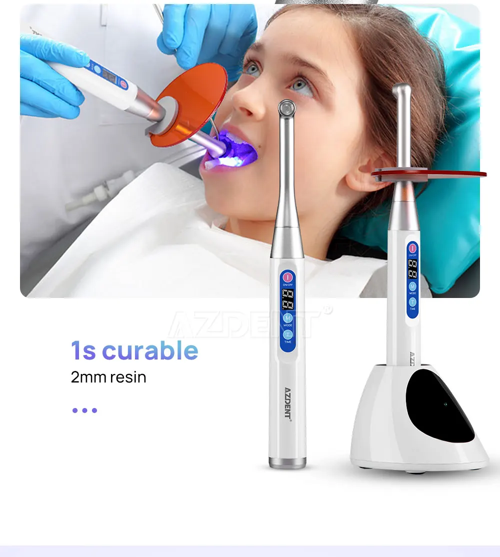 AZDENT Dental Cordless Led Curing Light 1 Second Cure Lamp Device Blue Light 2400mW/cm2 3 Modes 440nm-480nm Dentistry Equipment