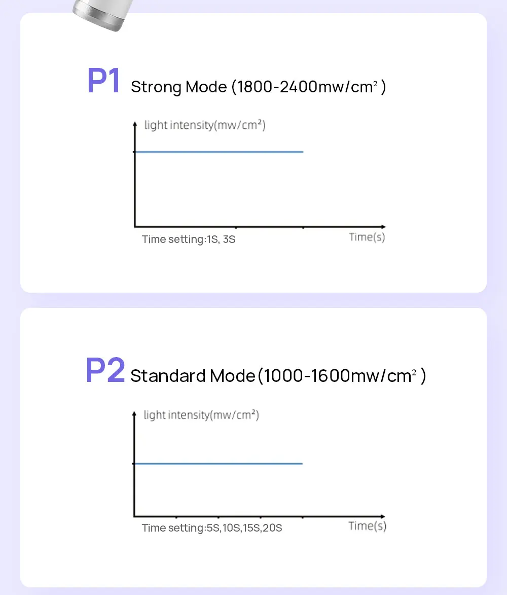 P2 Standard mode:1000mW/cm2~1600mW/cm2