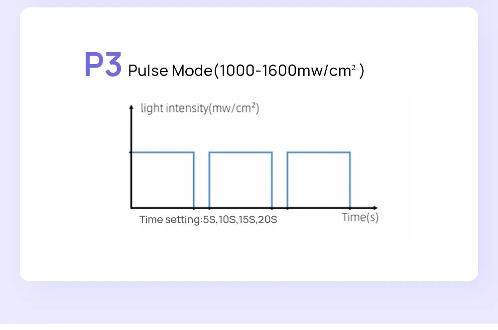 P3 Pulse mode:1200mW/cm2~1600mW/cm2