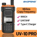 ★【Upgraded for Baofeng UV-5R】999 memory channel; Dual band; Handsfree VOX mode; Alarm function; Keyboard lock; LCD flashlight. FCC ID: 2AJGM-P10UV.