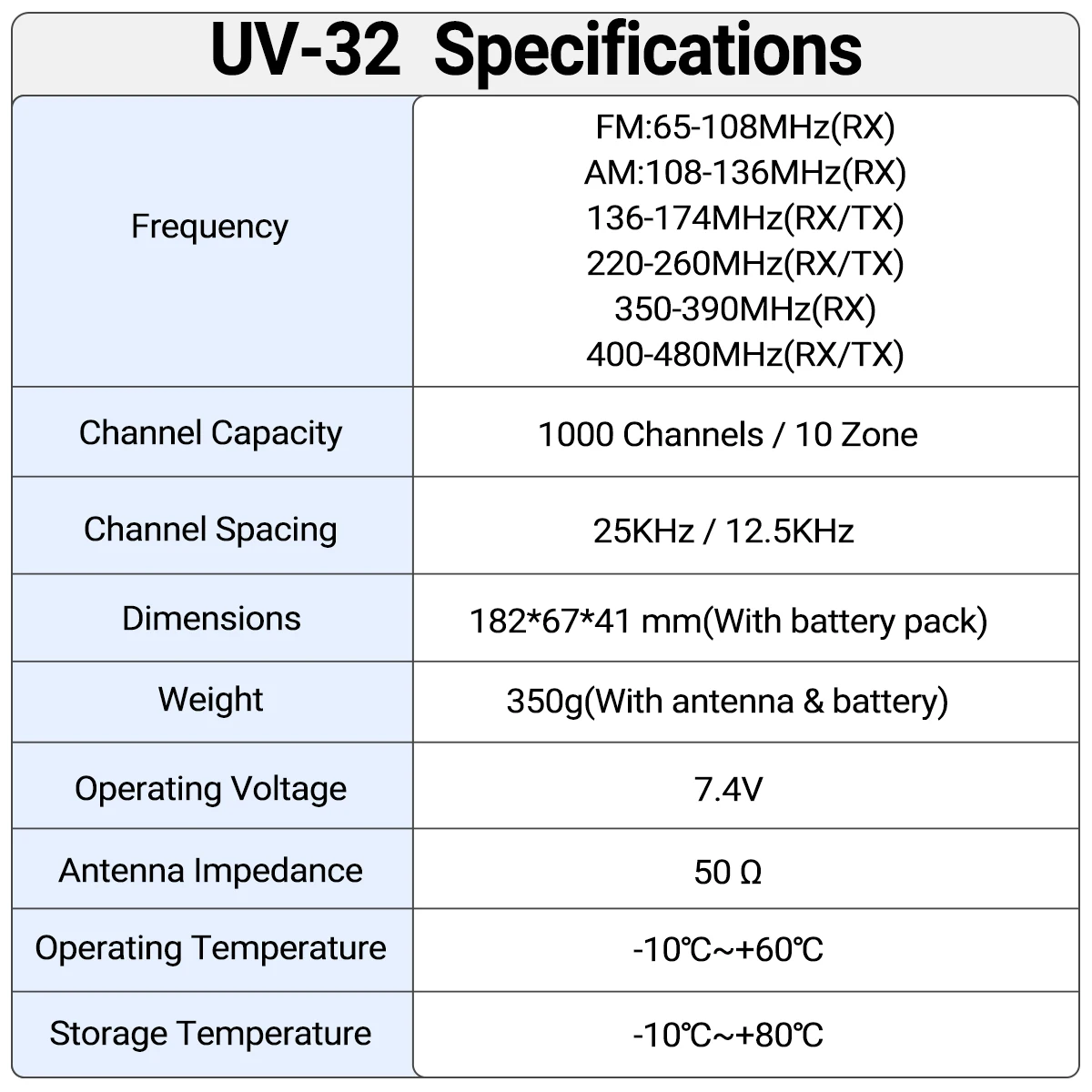 UV32 comes with an advanced Bluetooth frequency programming function.The Bluetooth write frequency feature allows you to customize and adjust frequencies with ease. No more fumbling with cables and complex software installations. Simply pair your device via Bluetooth and effortlessly program the frequencies to suit your specific needs.