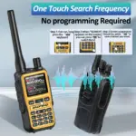 One click quick copy frequency, 5R MINI will search for another radio transmission frequency and privacy code. Finally, press the menu to store the frequency. Two walkie talkies can communicate normally. Communication is smooth and unobstructed, there is no need to worry about not knowing each other’s frequency.