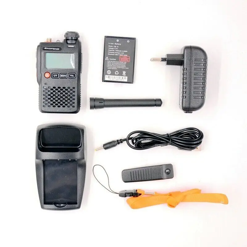 The Baofeng UV-3R package comes complete with all essentials for immediate use: