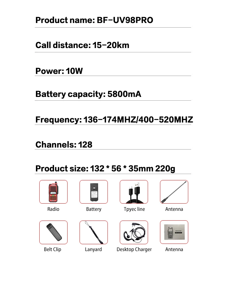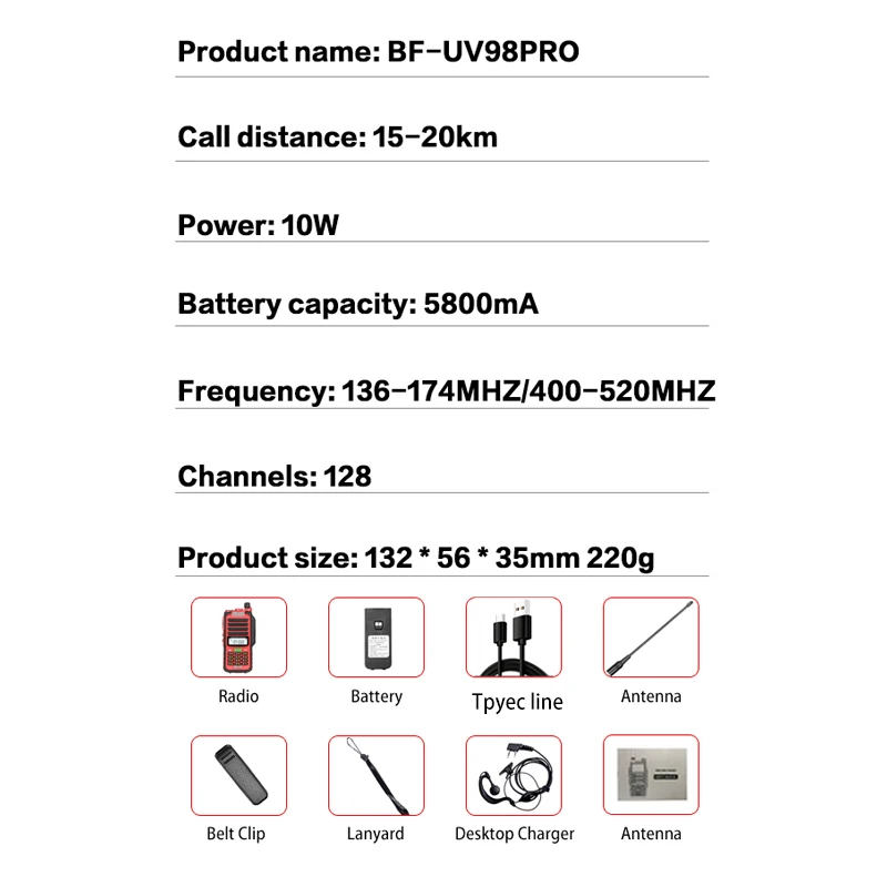 Be the first to review “BaoFeng UV98 Pro Walkie Talkie Professional UV98 V2 Plus 10W Powerful Waterproof VHF UHF Dual Band Two Way Radio”