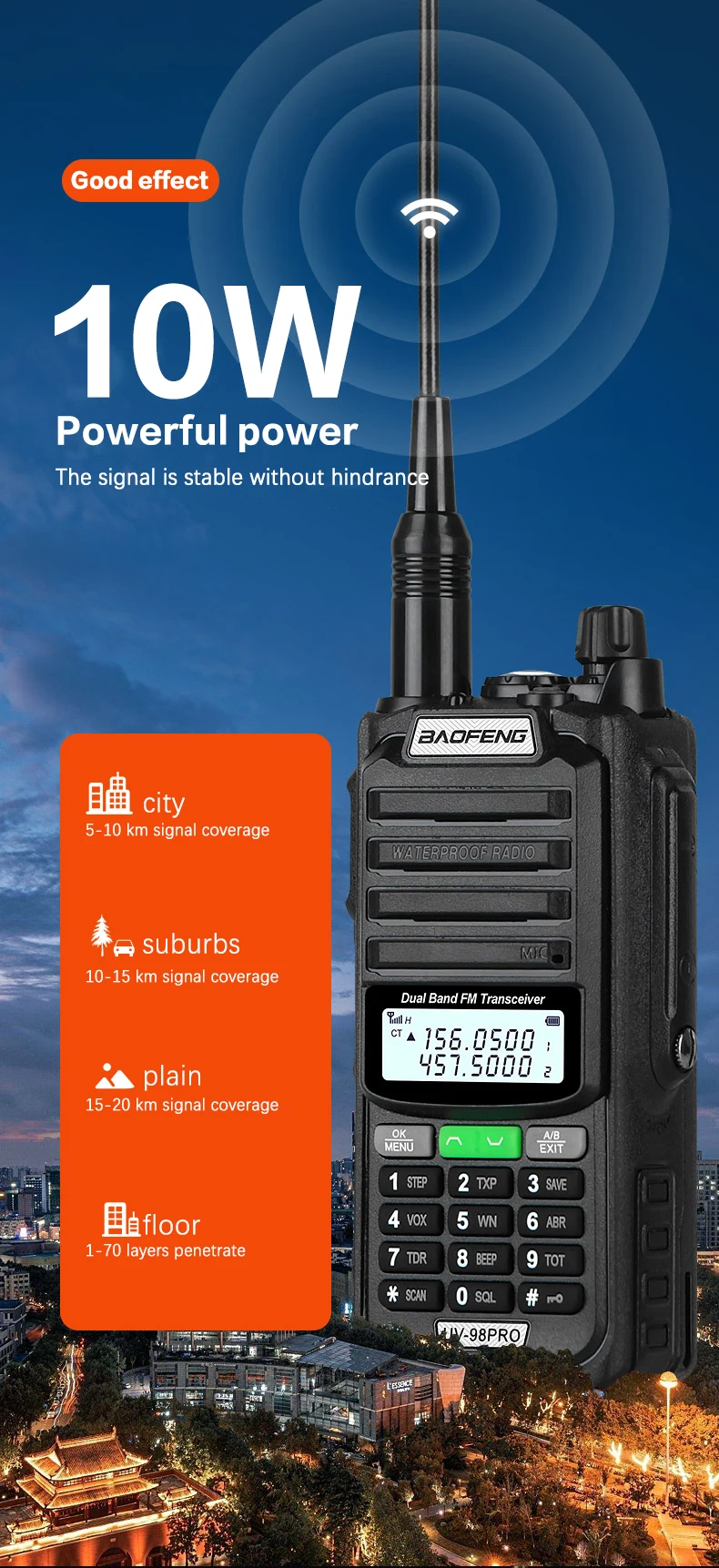 BaoFeng UV98 Pro Walkie Talkie Professional UV98 V2 Plus 10W Powerful Waterproof VHF UHF Dual Band Two Way Radio