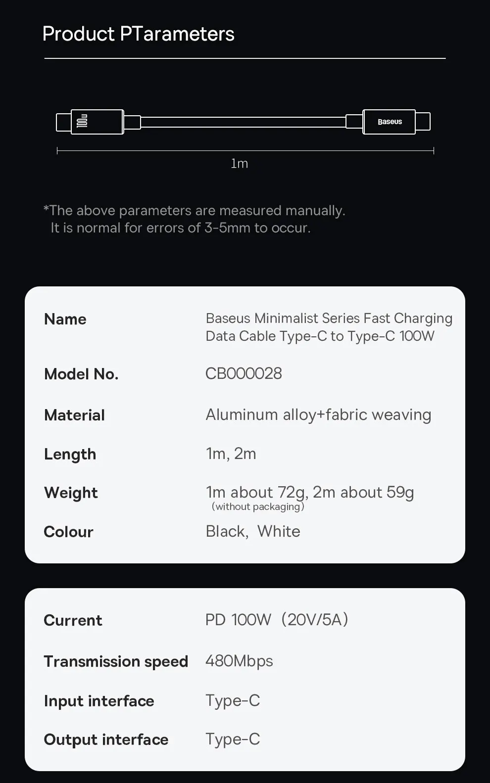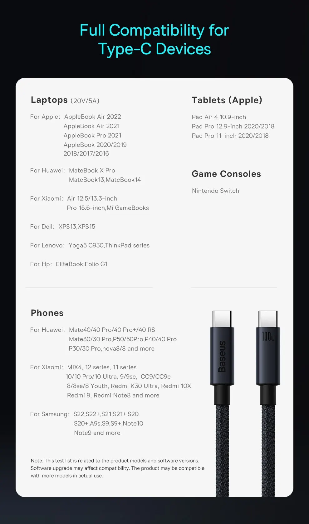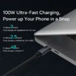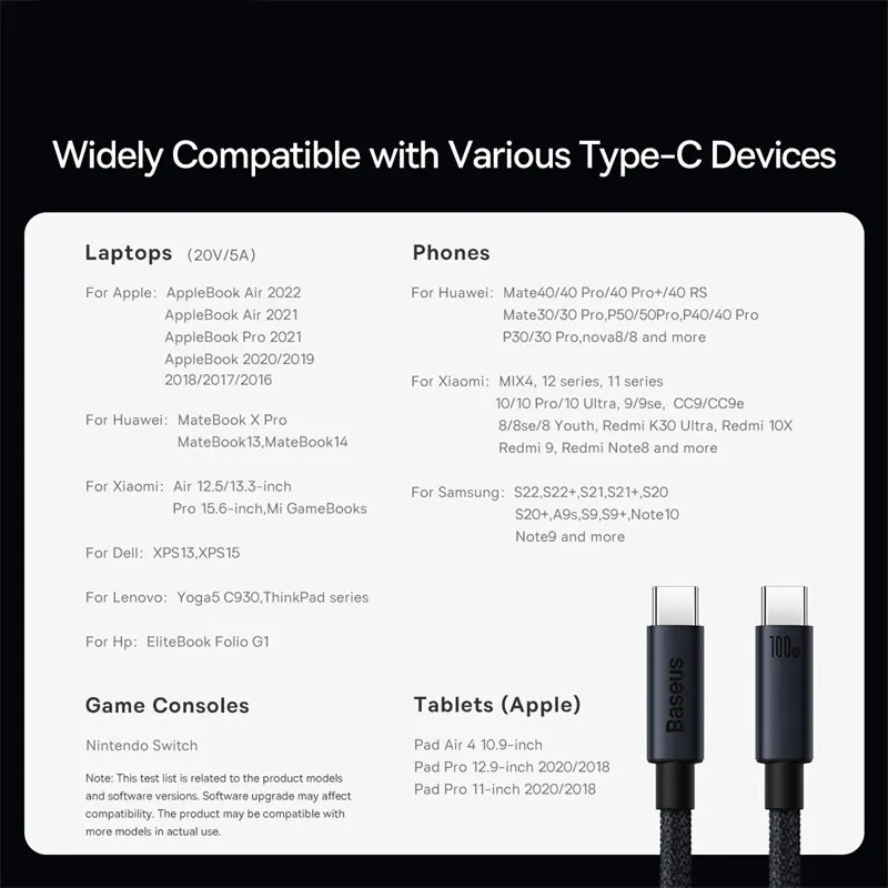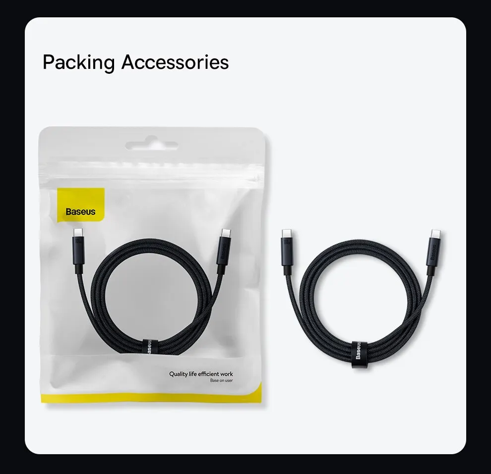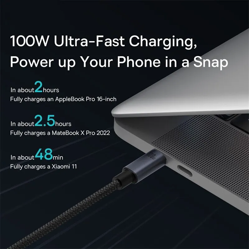 • Fast Charging :Charge your devices quickly with the Baseus 100W USB C to Type C cable.
