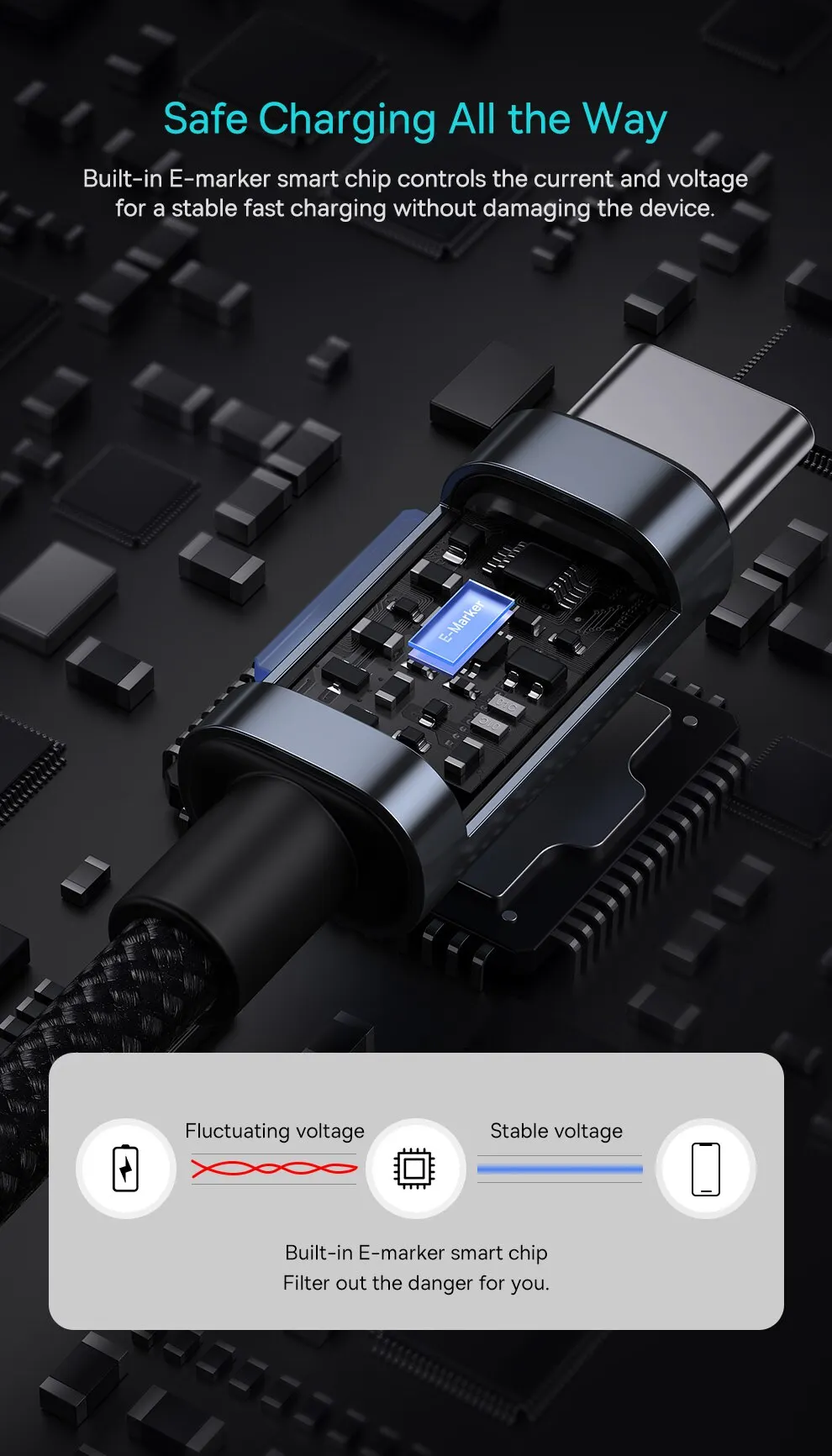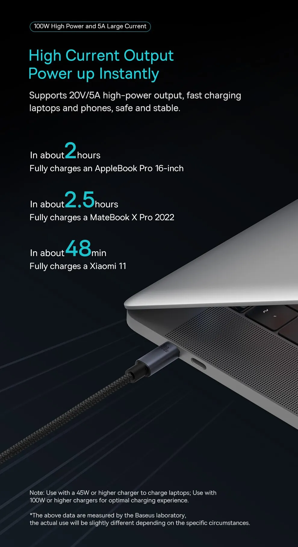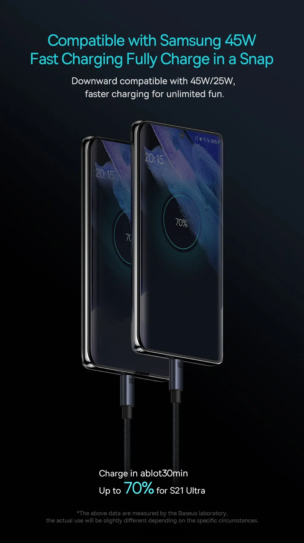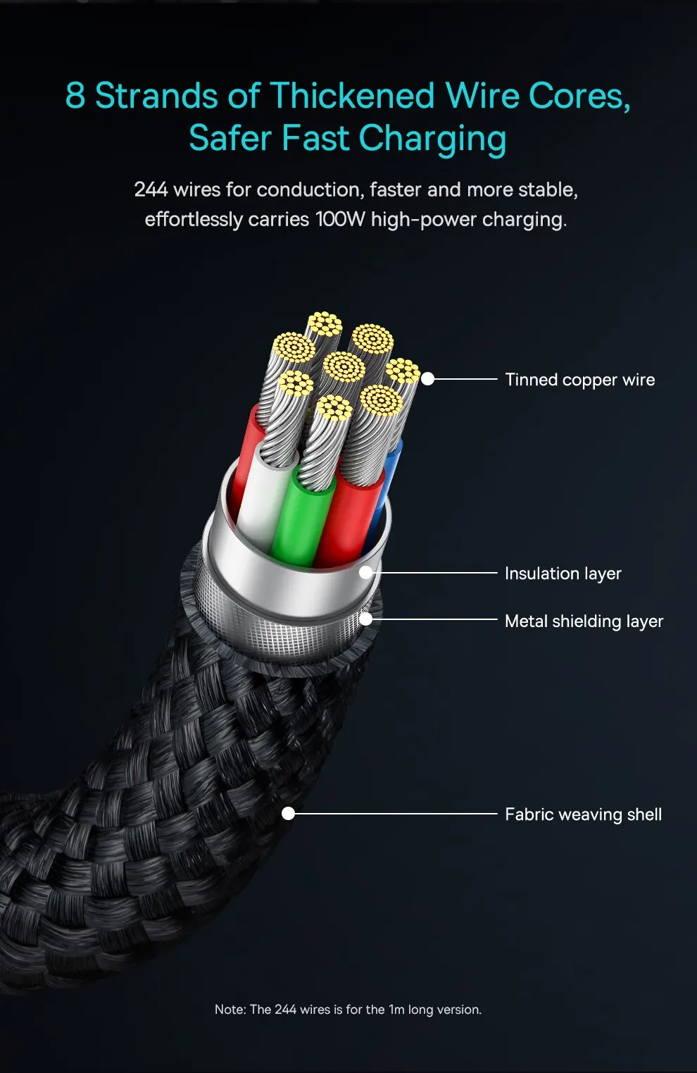 • Fast Charging :Charge your devices quickly with the Baseus 100W USB C to Type C cable.