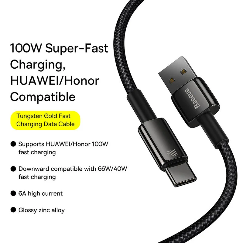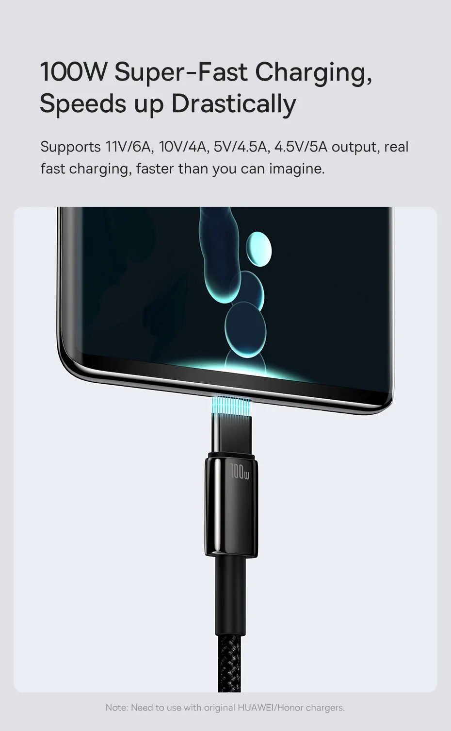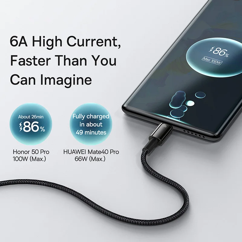 Baseus 100W USB Type C Cable For Samsung Pro Fast Charging Wire USB-C Charger Data Cord For Huawei P30 Realme Oneplus Poco F3