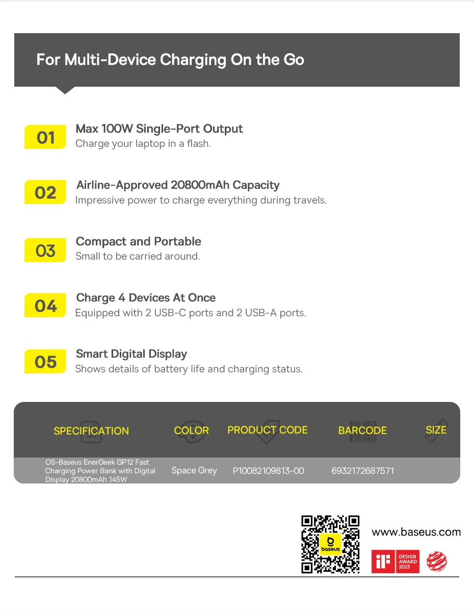 Baseus EnerGeek GP12 145W 20800mAh Power Bank