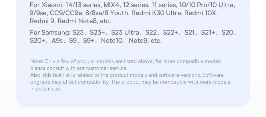 - Features 10: Suitable for Xiaomi 14/13 series,MIX4,12 series, 11 series,10/10 Pro/10 Ultra,9/9se, CC9/CC9e, 8/8se/8 Youth, Redmi K30 Ultra, Redmi10X,Redmi 9.Redmi Note8,etc.