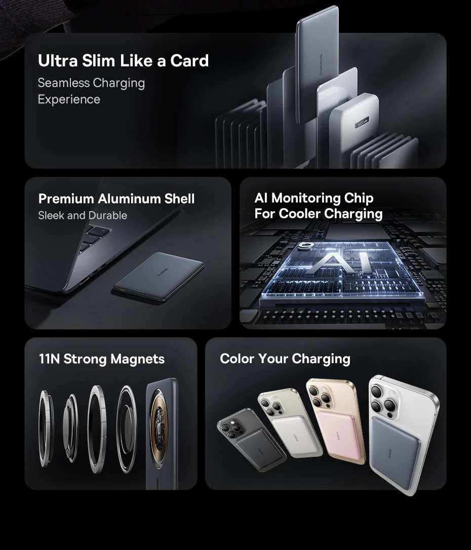 ✔Ultra Slim Like a Card, Seamless Charging Experience