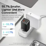 Shorter in size compared to GaN3 chargers, the new design is more in line with the principle of mechanics, and it offers a more balanced and stable plug-in without falling off.