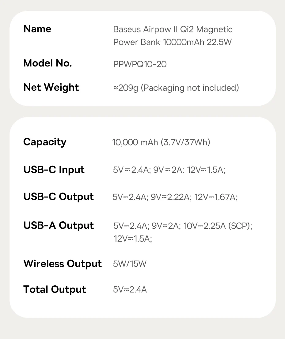 - Name: Baseus Airpow Il Qi2 Magnetic Power Bank 10000mAh 22.5W