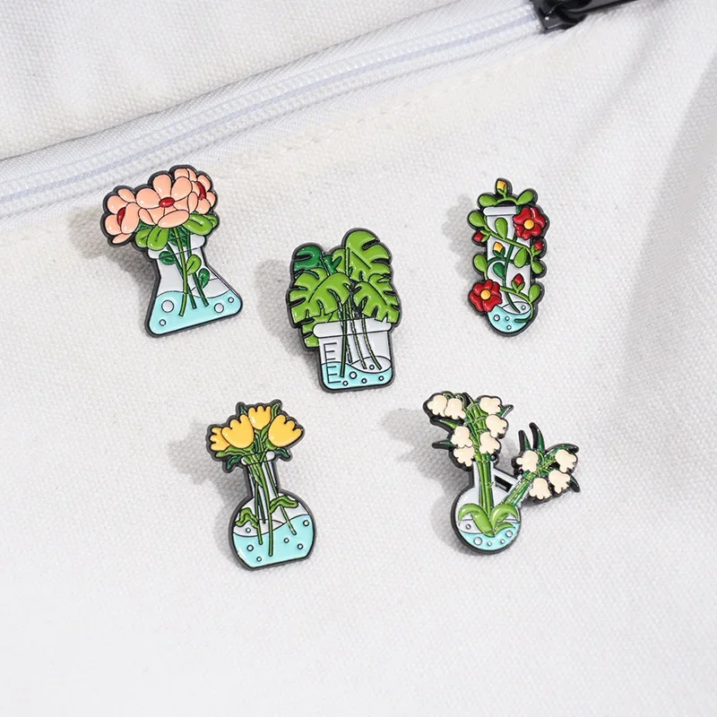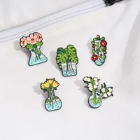 Beautify Plant Flower Vase Brooch Enamel Pins Funny Cute Metal Brooches Backpack Lapel Badge Jewelry Gift for Friends Wholesale